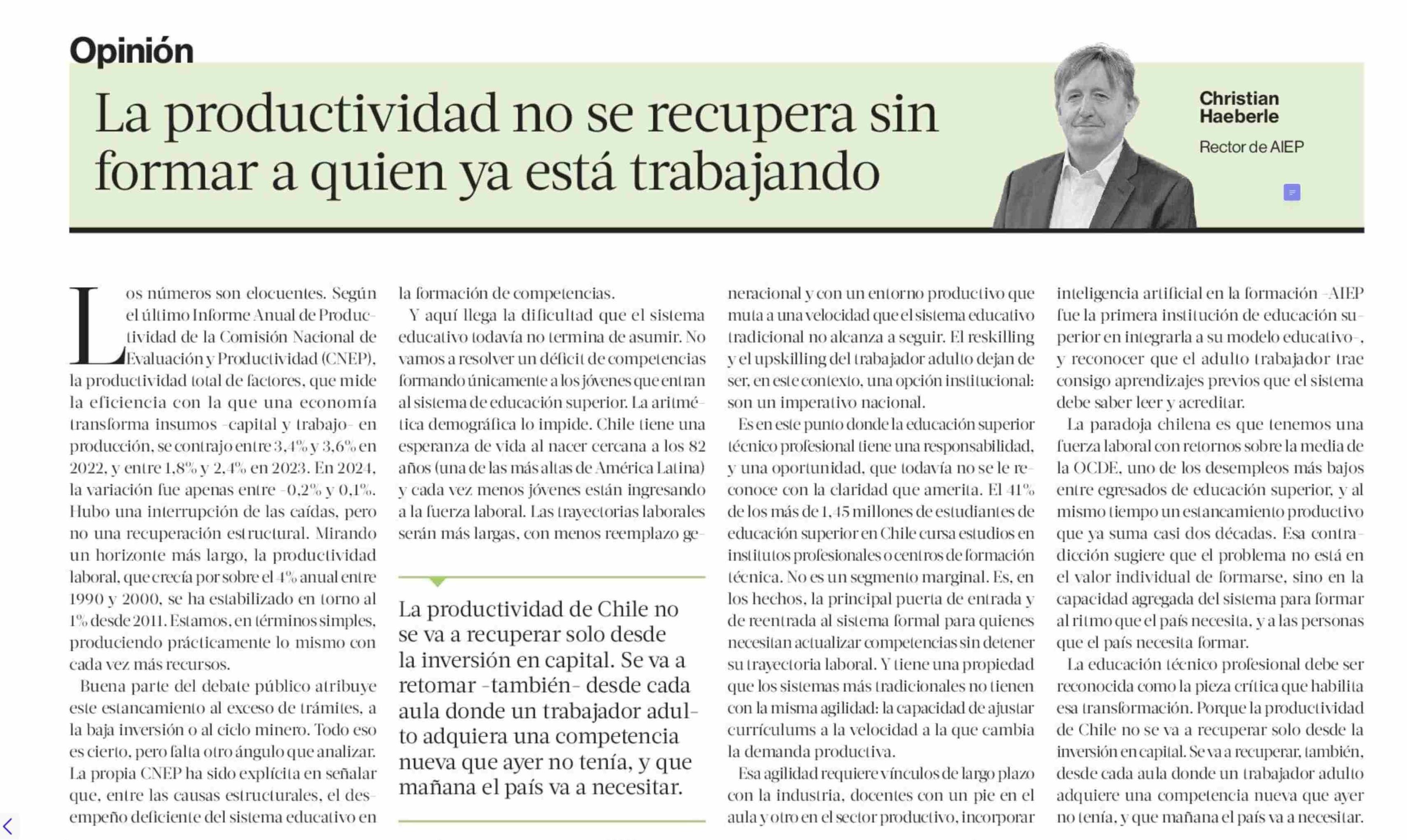 Título: COLUMNAS DE OPINIÓN: La productividad no se recupera sin formar a quien ya está trabajando