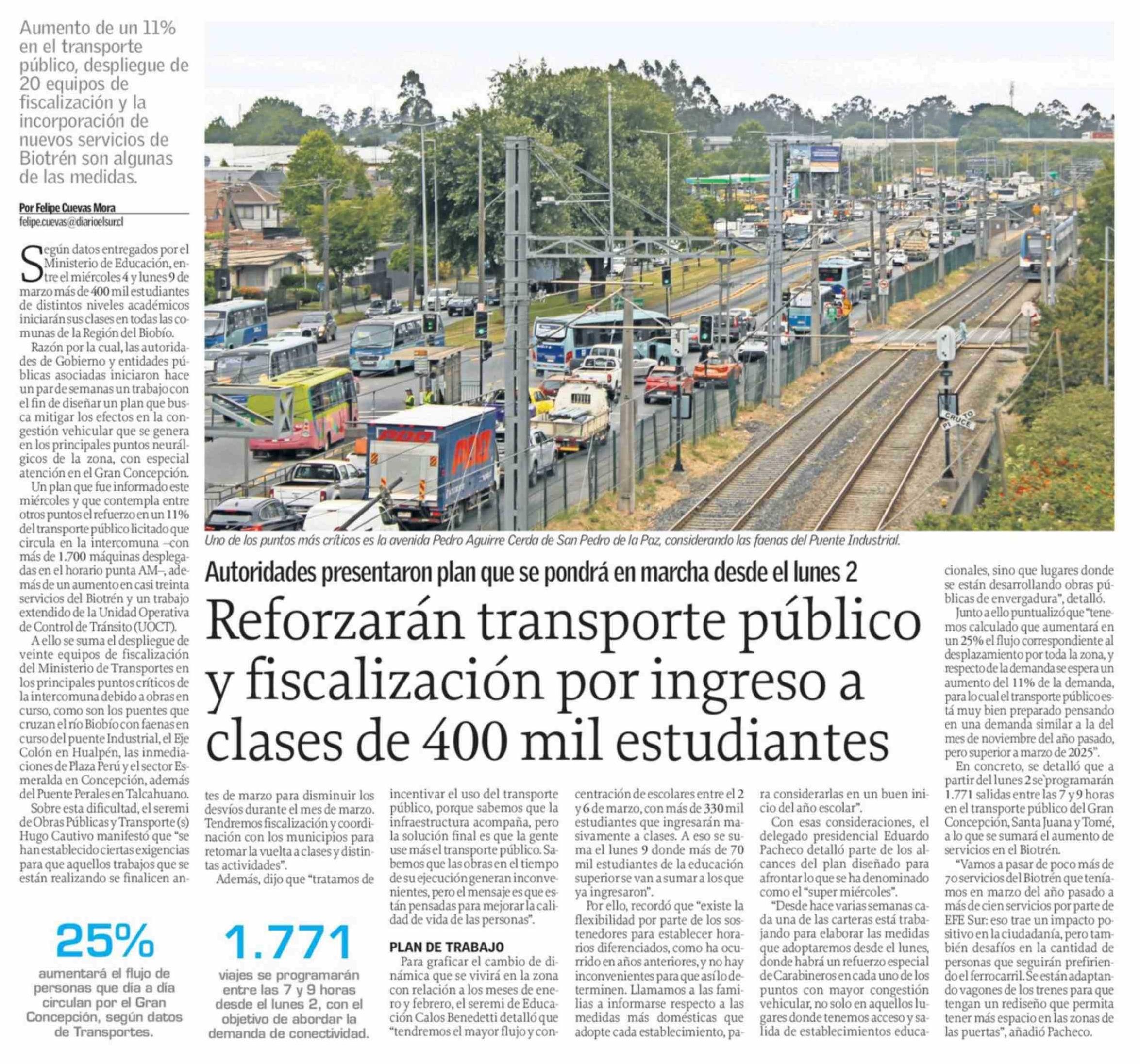 Título: Reforzarán transporte público y fiscalización por ingreso a clases de 400 mil estudiantes