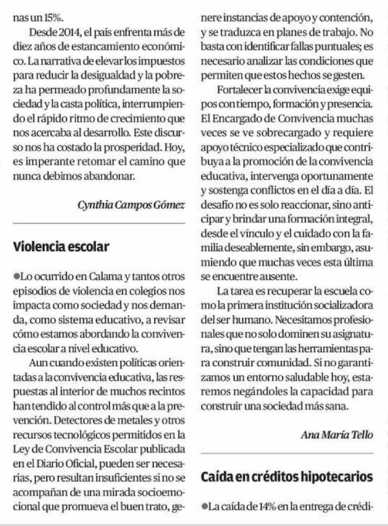 Cartas: Violencia escolar 22-04-2026 El Mercurio de Calama |