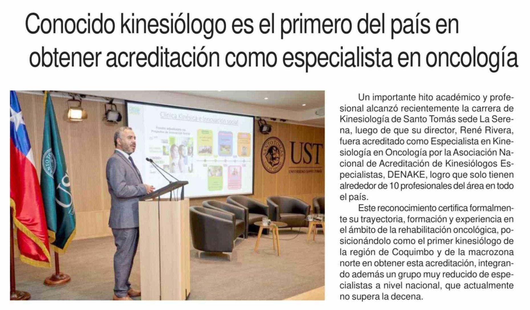 Conocido kinesiólogo es el primero del país en obtener acreditación como especialista en oncología 19-03-2026 Diario la Región |