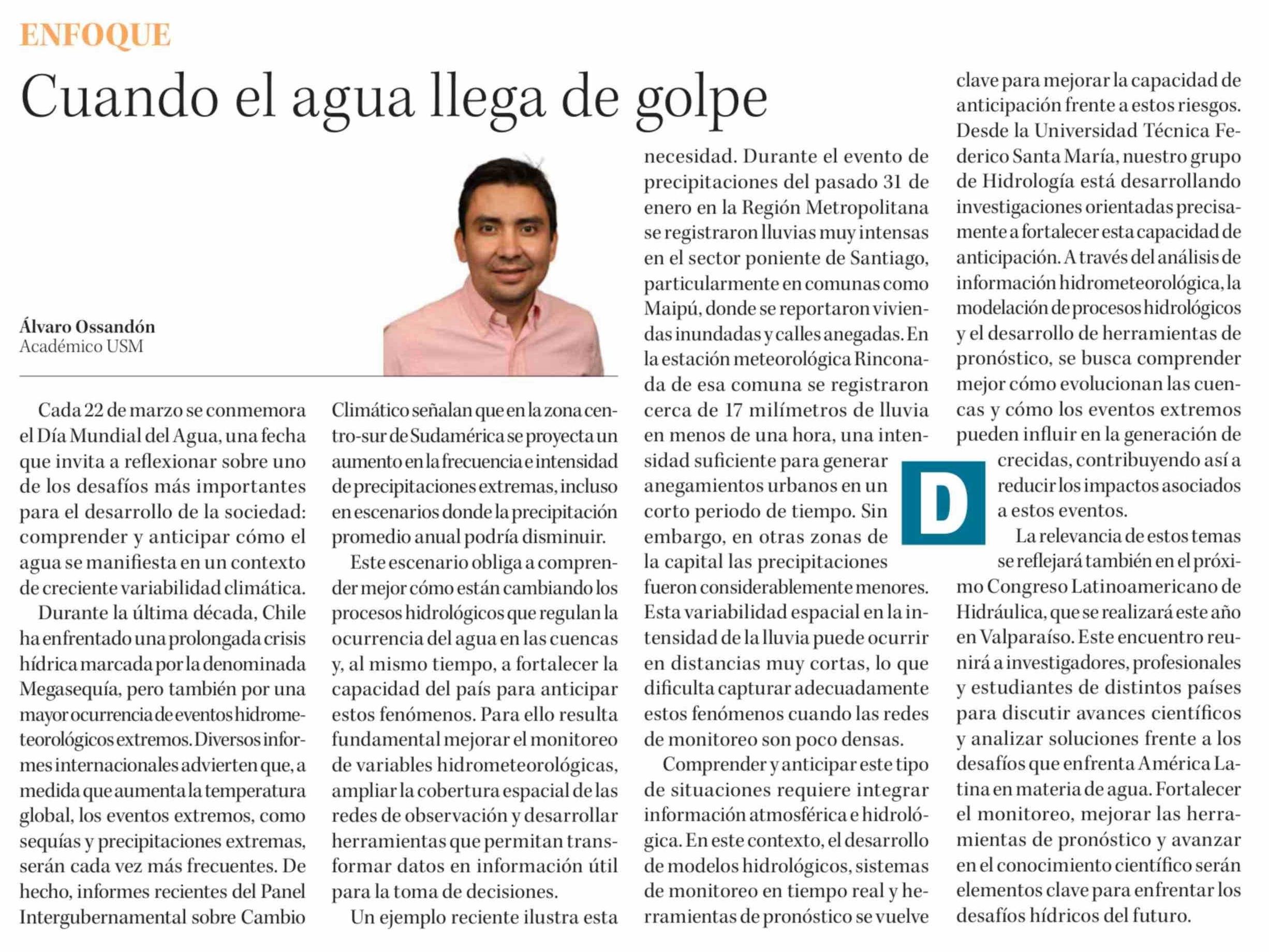 Título: Columnas de Opinión: Cuando el agua llega de golpe