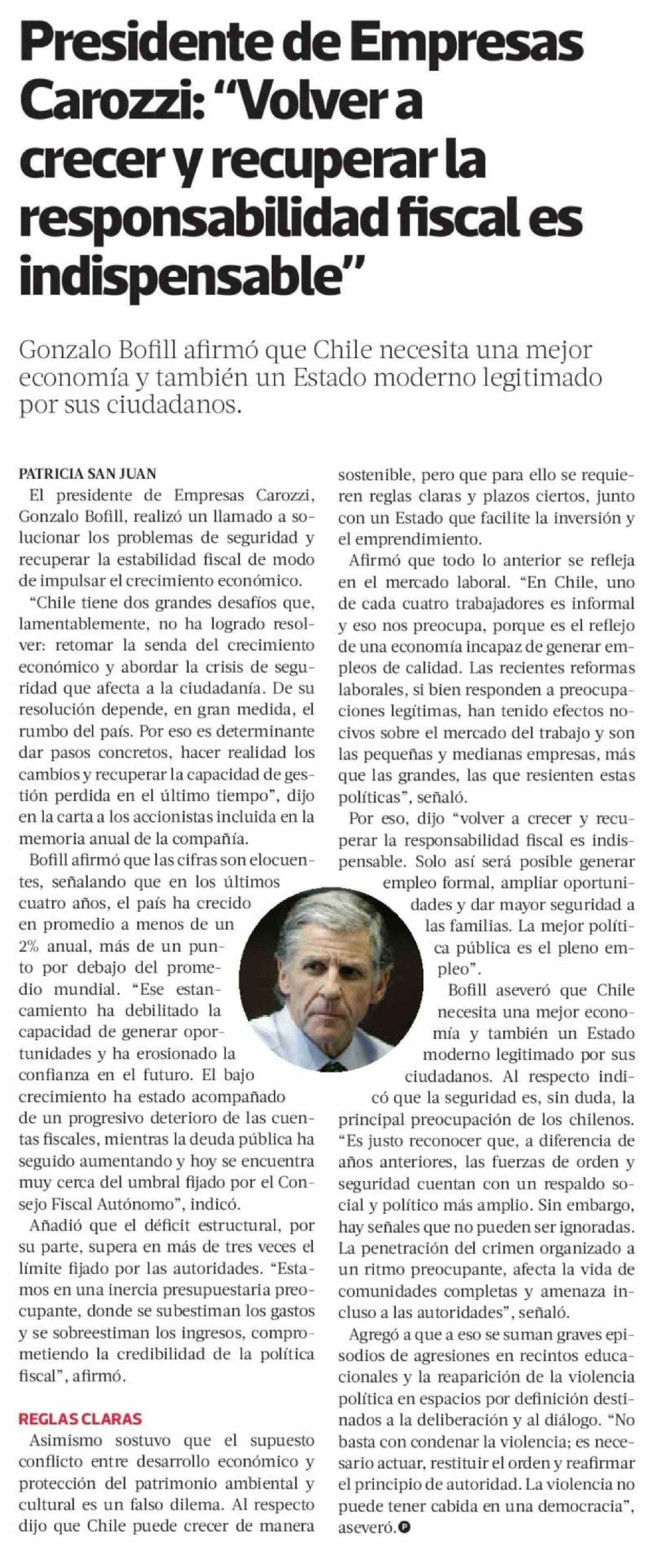 | Título: | Presidente de Empresas Carozzi: "Volver a crecer y recuperar la responsabilidad fiscal es indispensable" |