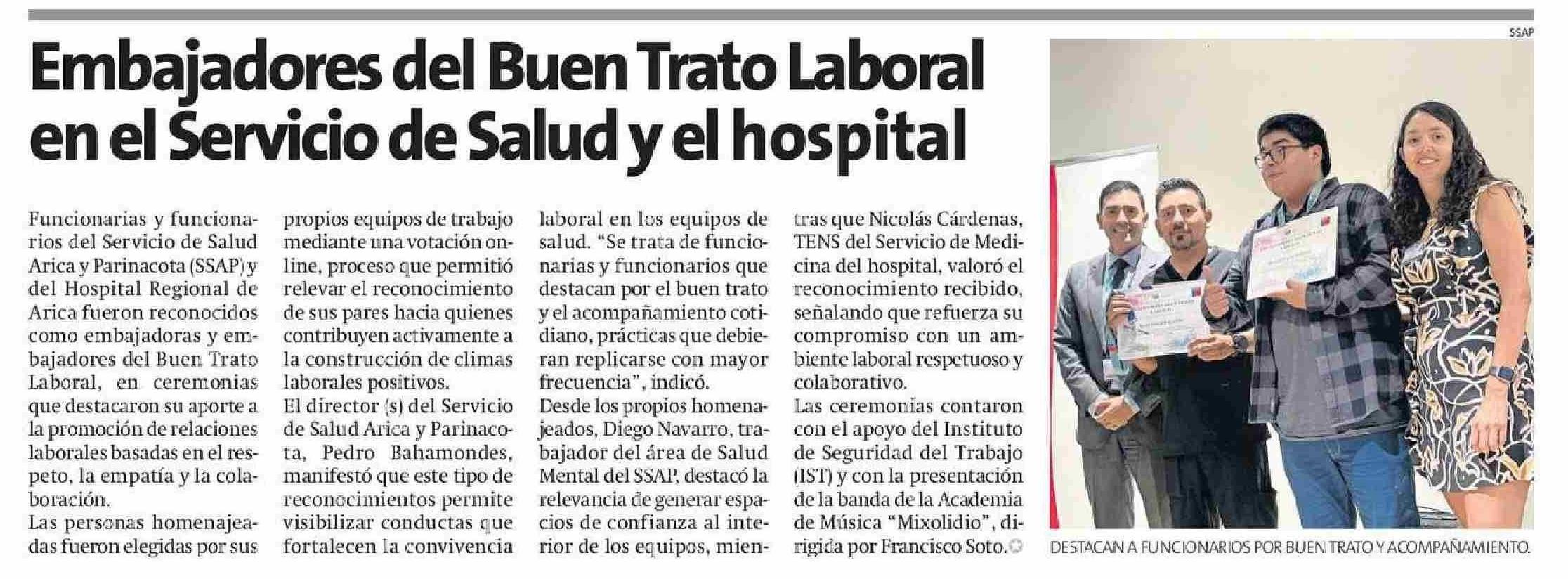 Embajadores del Buen Trato Laboral en el Servicio de Salud y el hospital 28-01-2026 La Estrella de Arica |