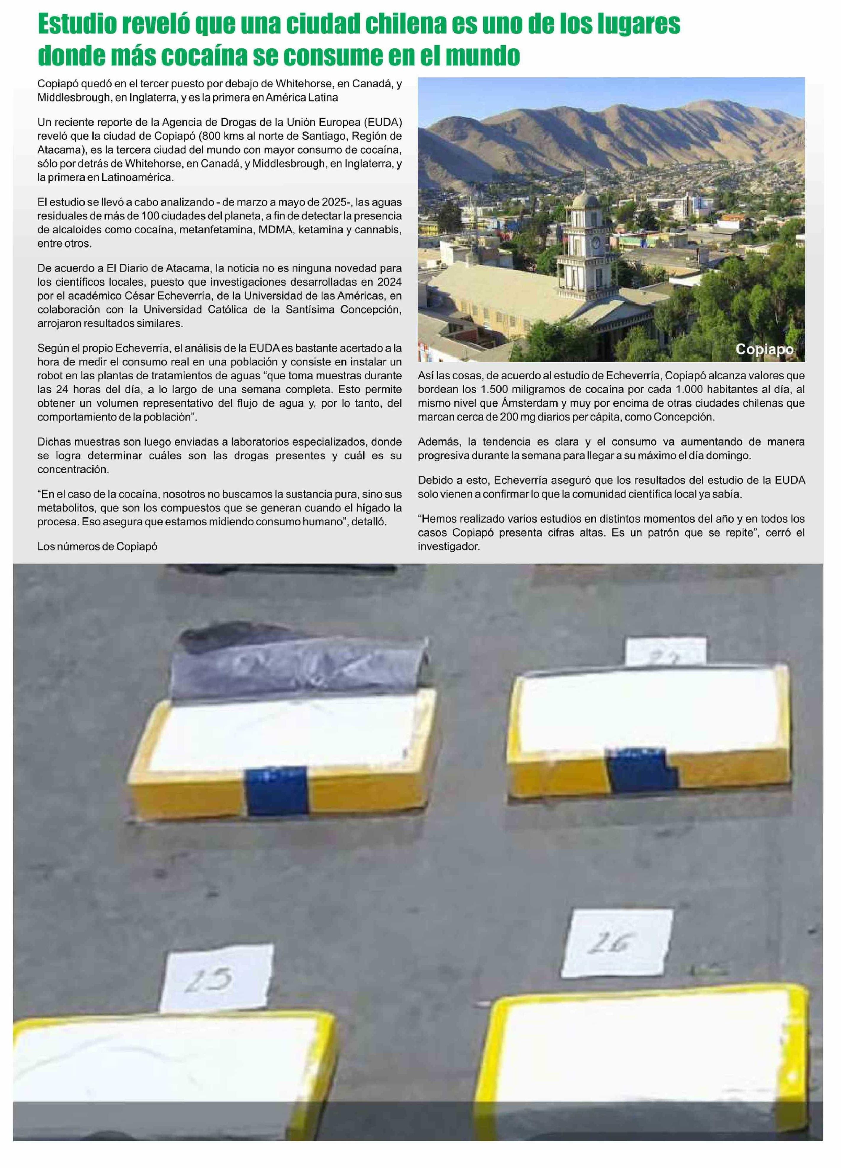 Título: Estudio reveló que una ciudad chilena es uno de los lugares donde más cocaína se consume en el mundo