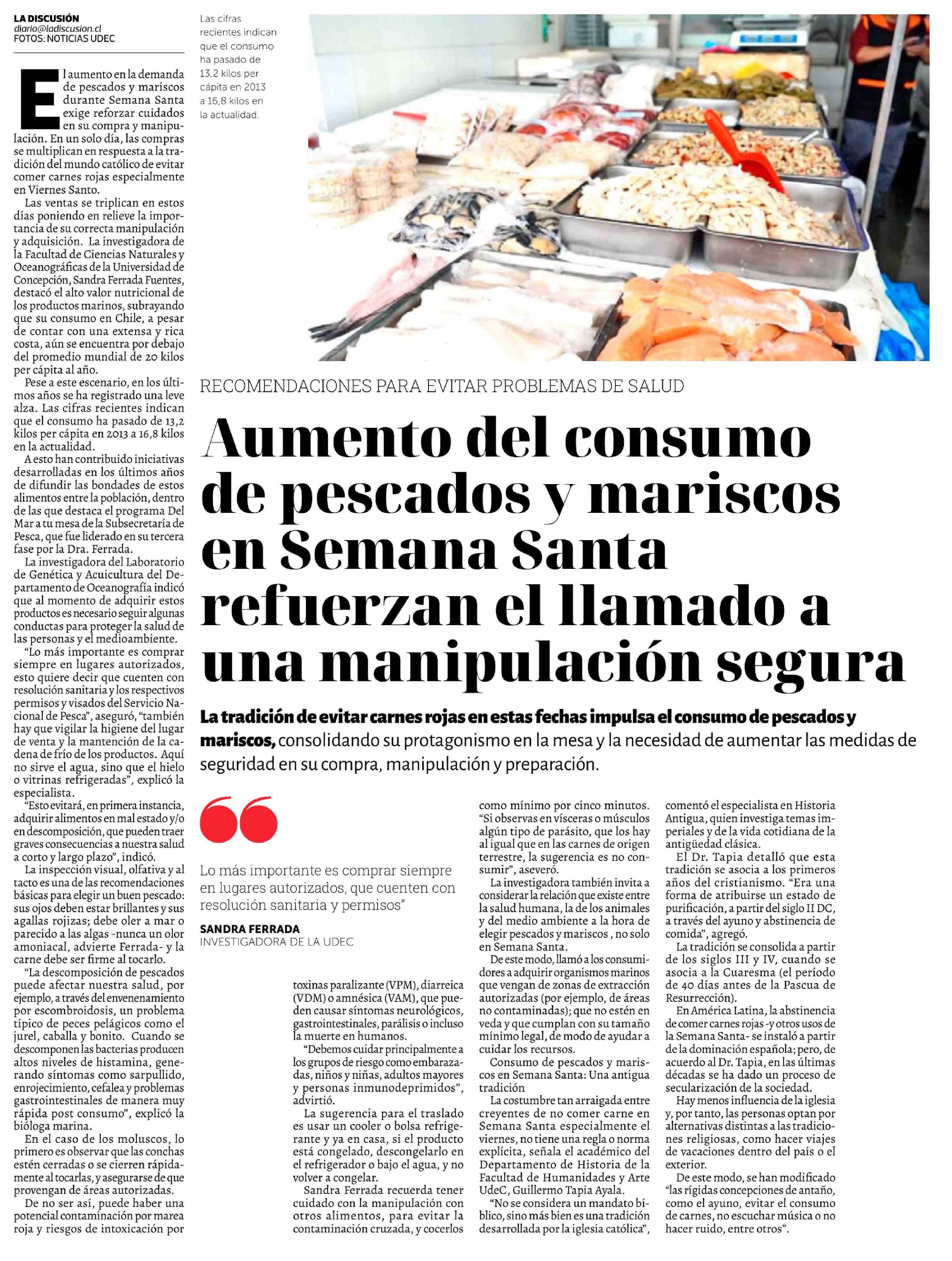 Aumento del consumo de pescados y mariscos en Semana Santa refuerzan el llamado a una manipulación segura 03-04-2026 La Discusión |