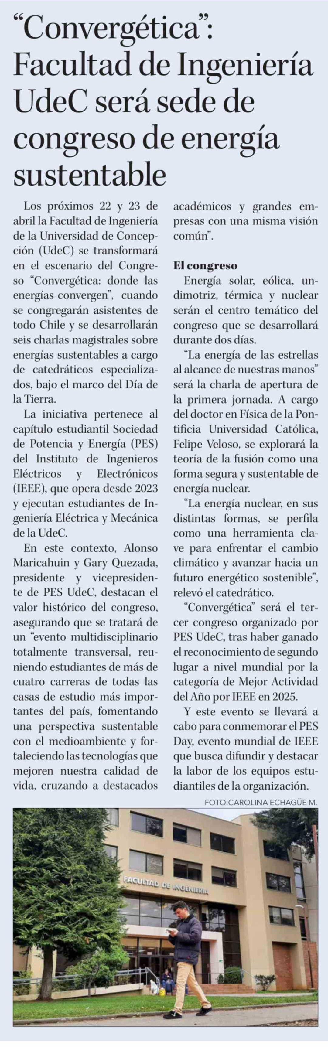 Título: 'Convergética": Facultad de Ingeniería UdeC será sede de congreso de energía sustentable
