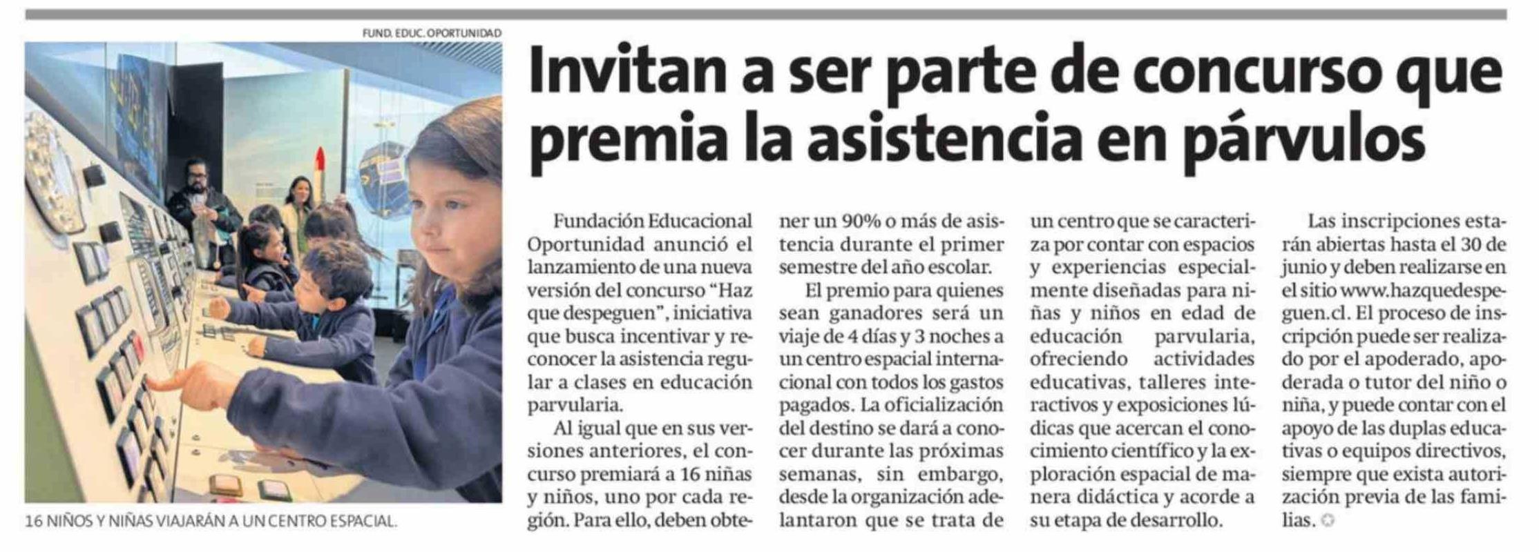 | Título: | Invitan a ser parte de concurso que premia la asistencia en párvulos |