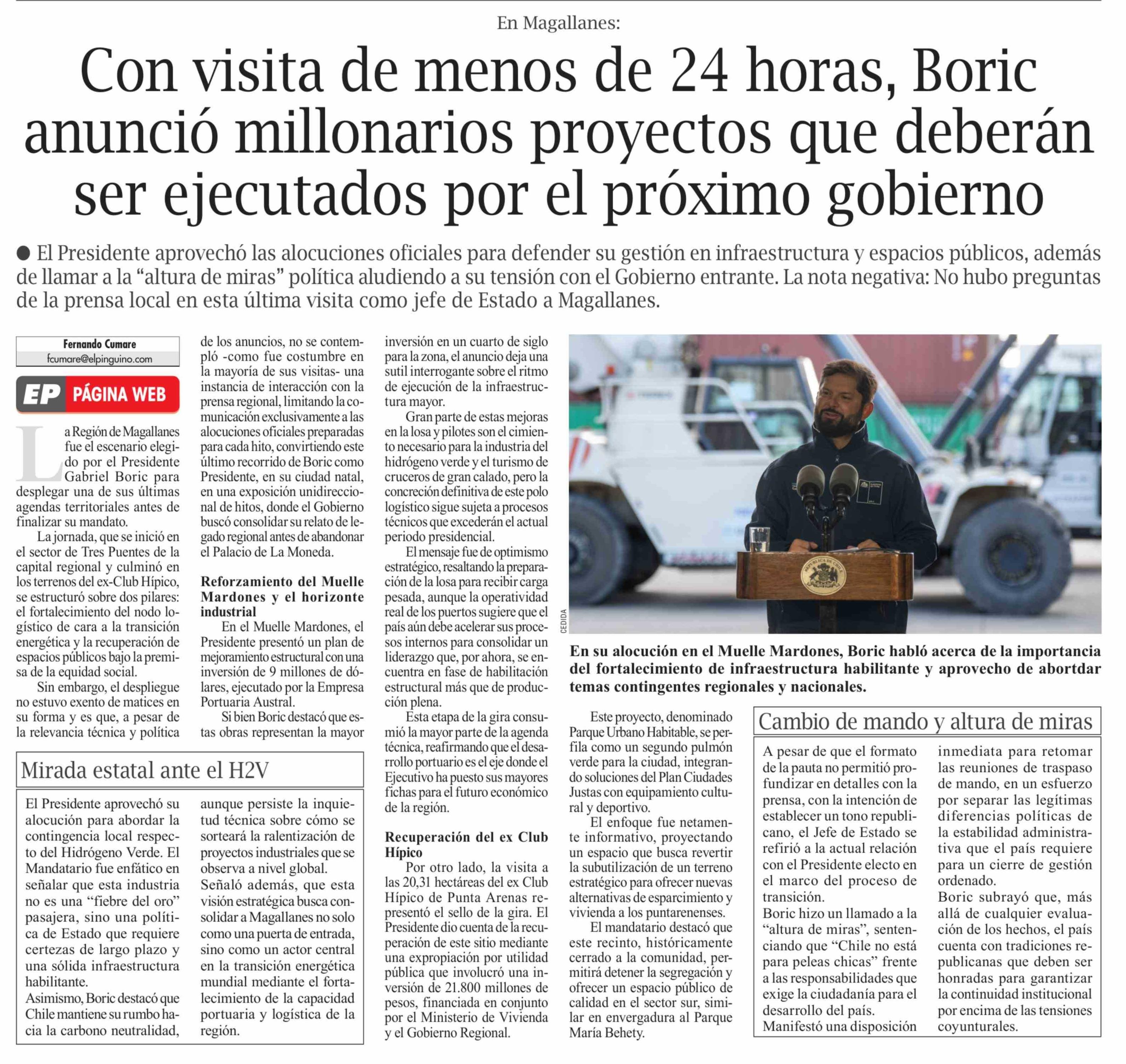 Título: Con visita de menos de 24 horas, Boric anunció millonarios proyectos que deberán ser ejecutados por el próximo gobierno