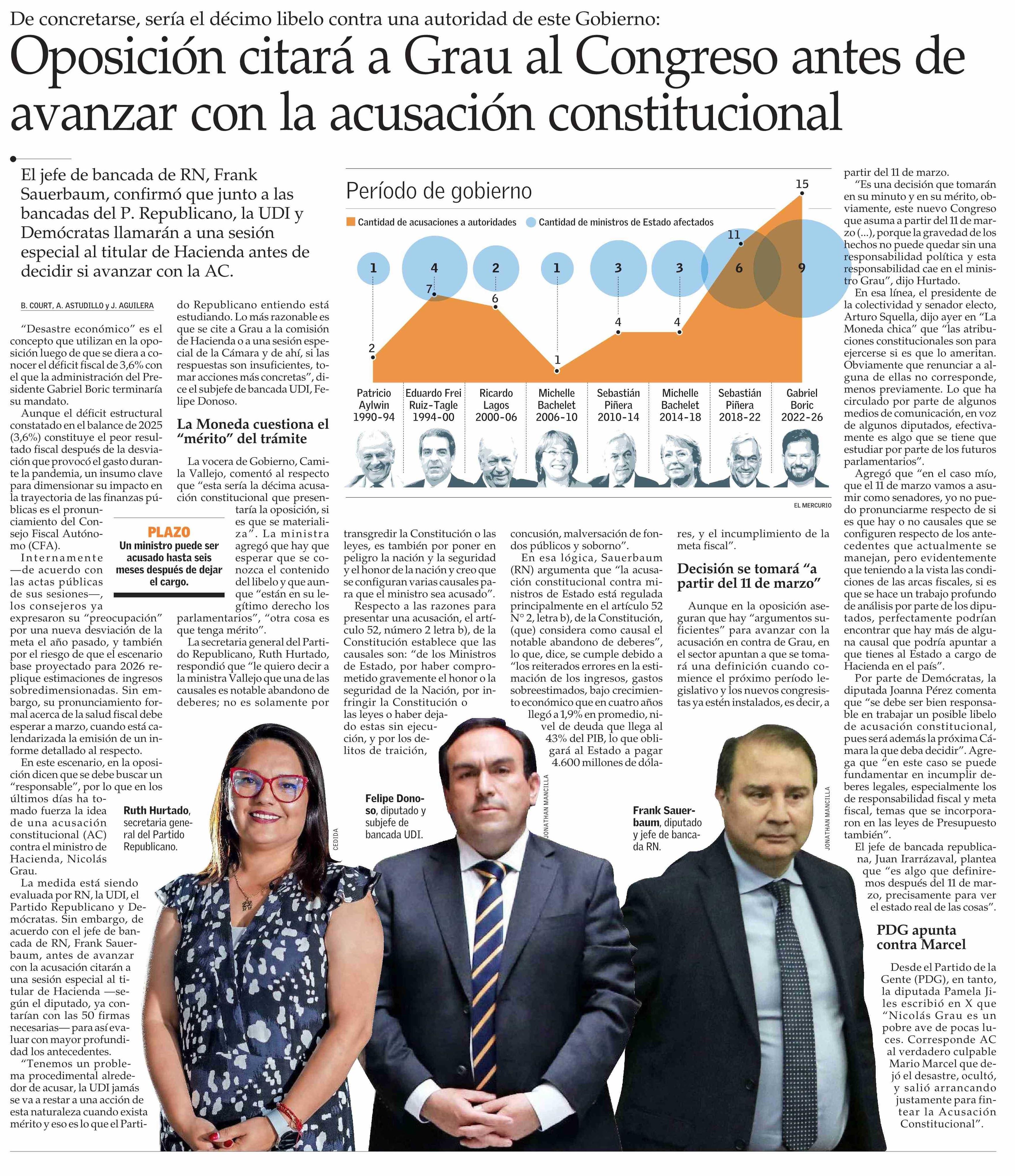 Oposición citará a Grau al Congreso antes de avanzar con la acusación constitucional 19-02-2026 El Mercurio |