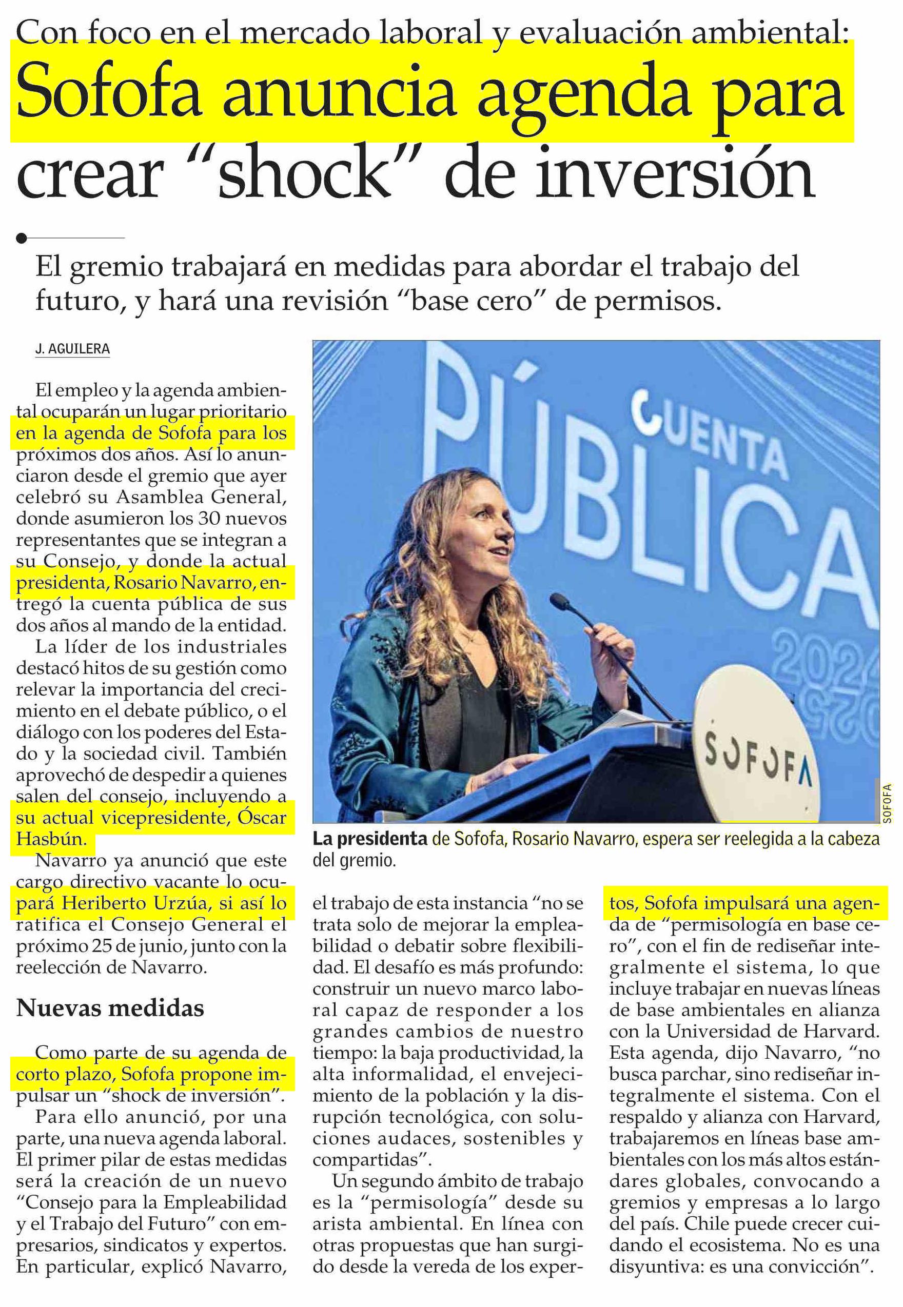 Título: Sofofa anuncia agenda para crear “shock” de inversión