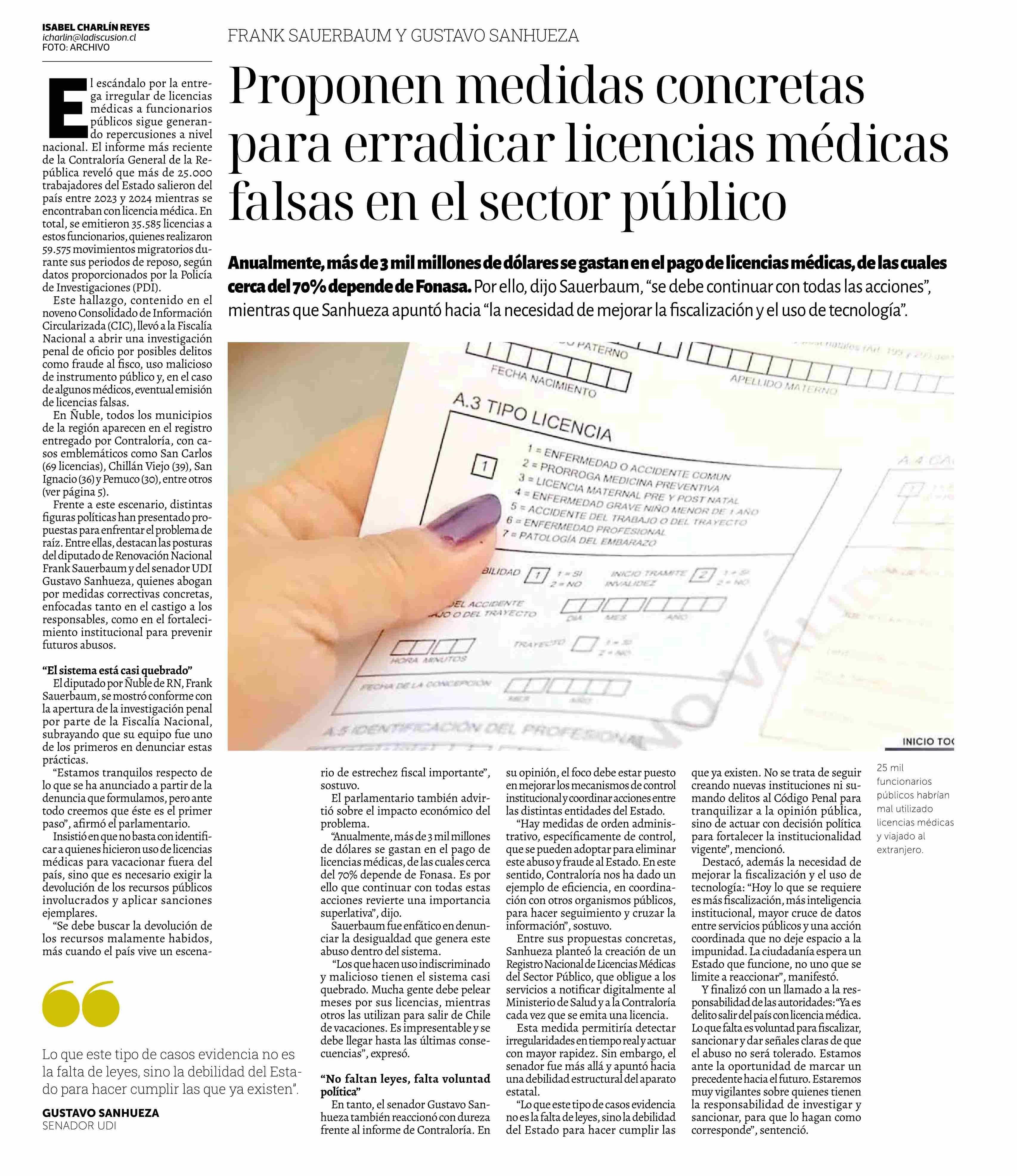 Proponen medidas concretas para erradicar licencias médicas falsas en el sector público 24-05-2025 La Discusión |