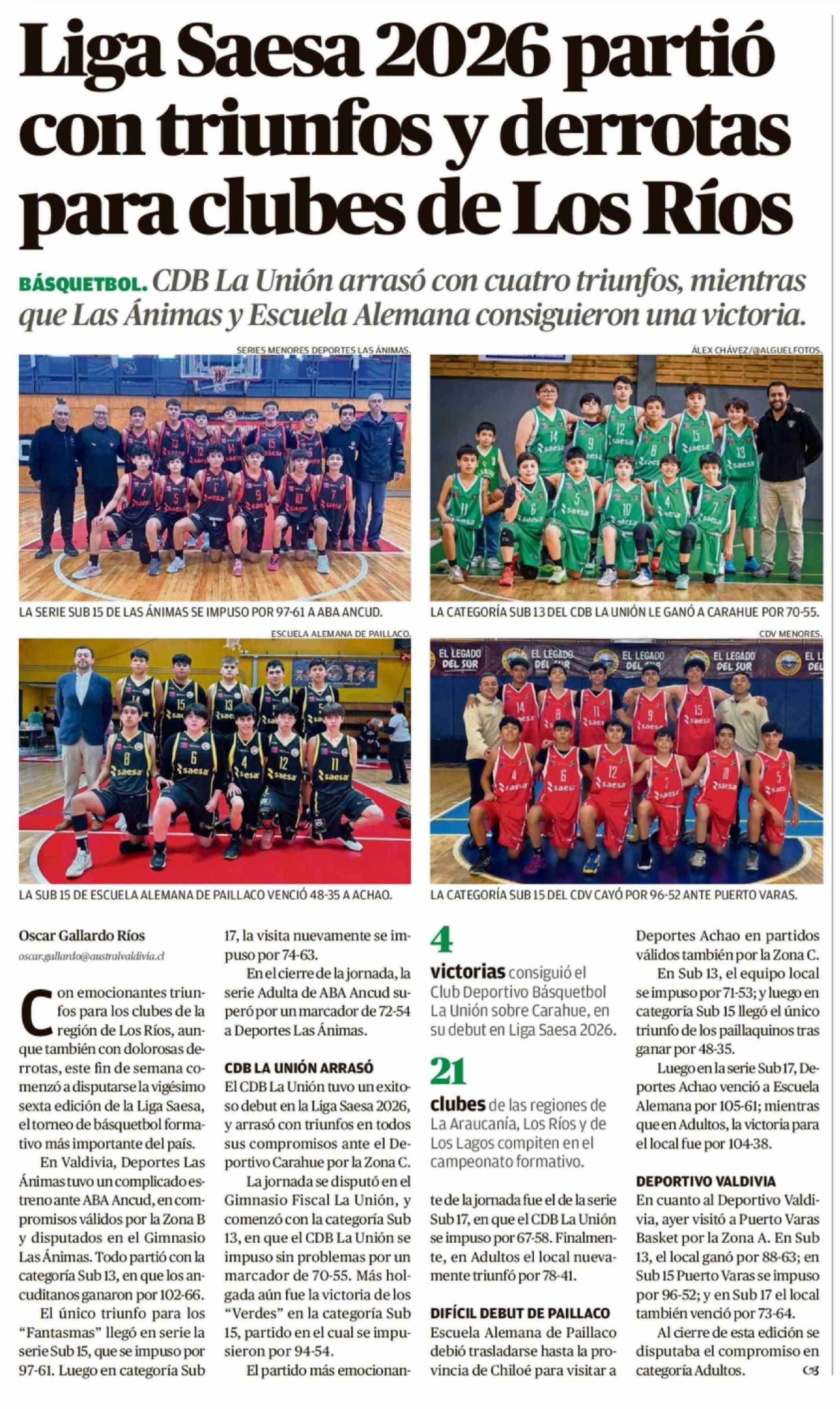 Título: Liga Saesa 2026 partió con triunfos y derrotas para clubes de Los Ríos