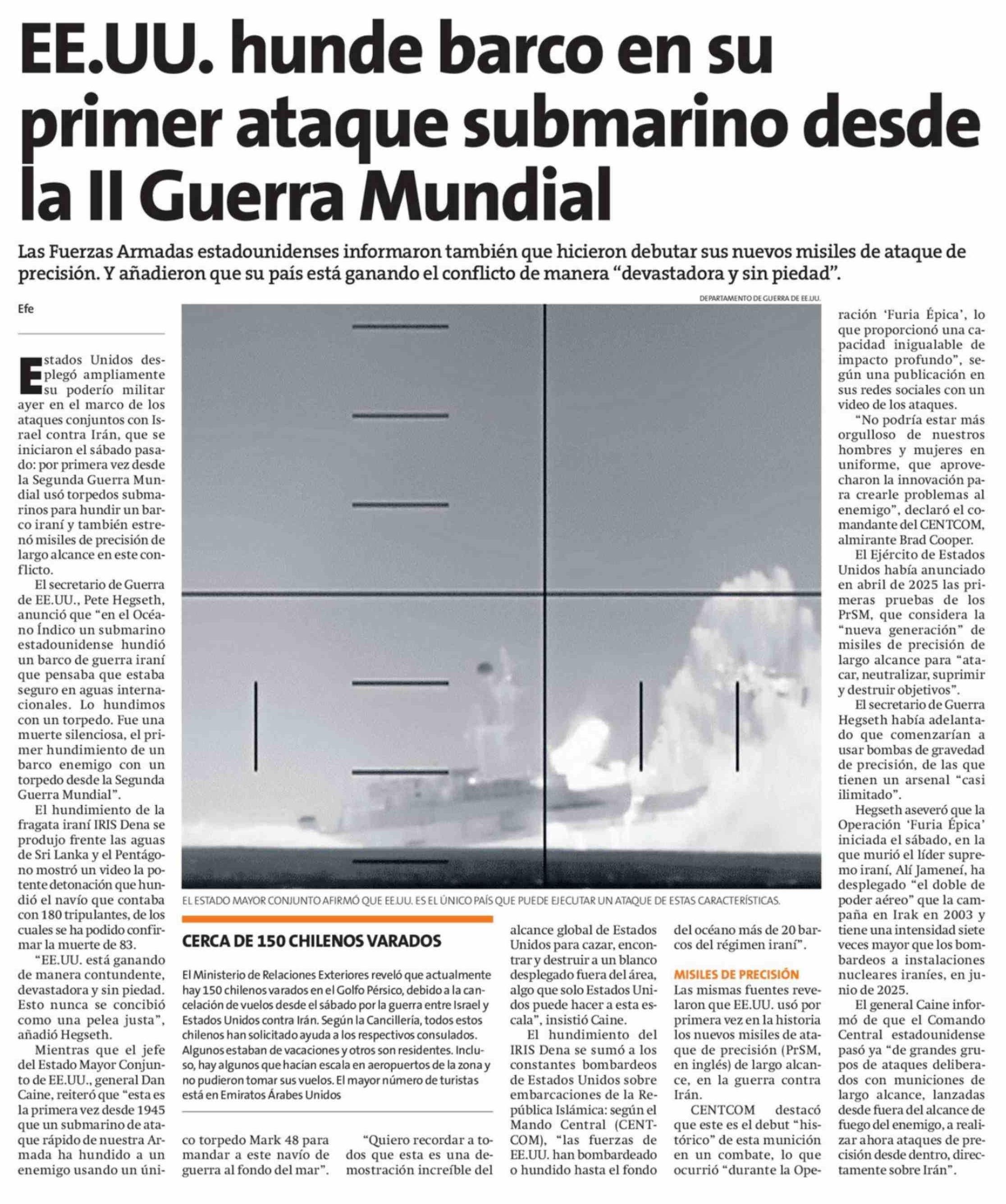 Título: EE.UU. hunde barco en su primer ataque submarino desde la II Guerra Mundial