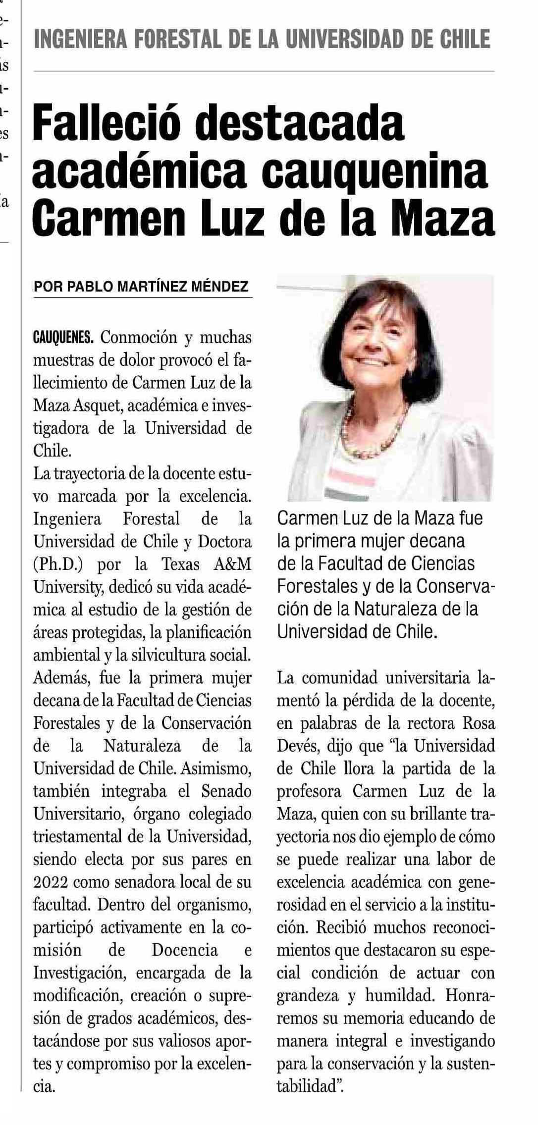 Título: Falleció destacada académica cauquenina Carmen Luz de la Maza