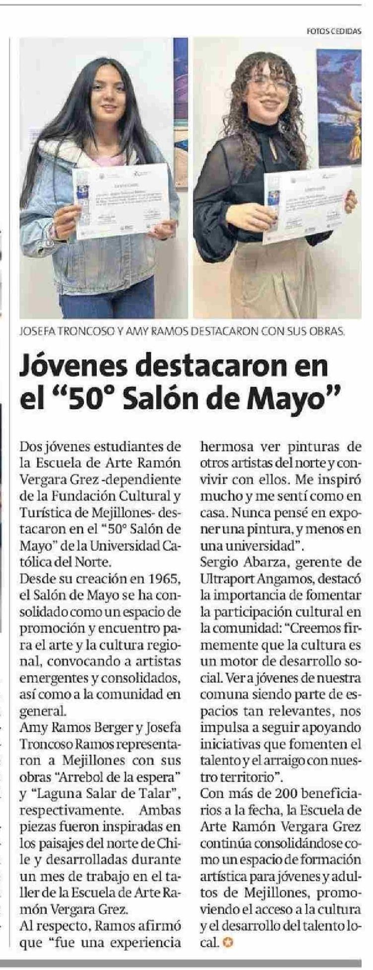 Jóvenes destacaron en el “50? Salón de Mayo” 06-06-2025 La Estrella de Antofagasta |