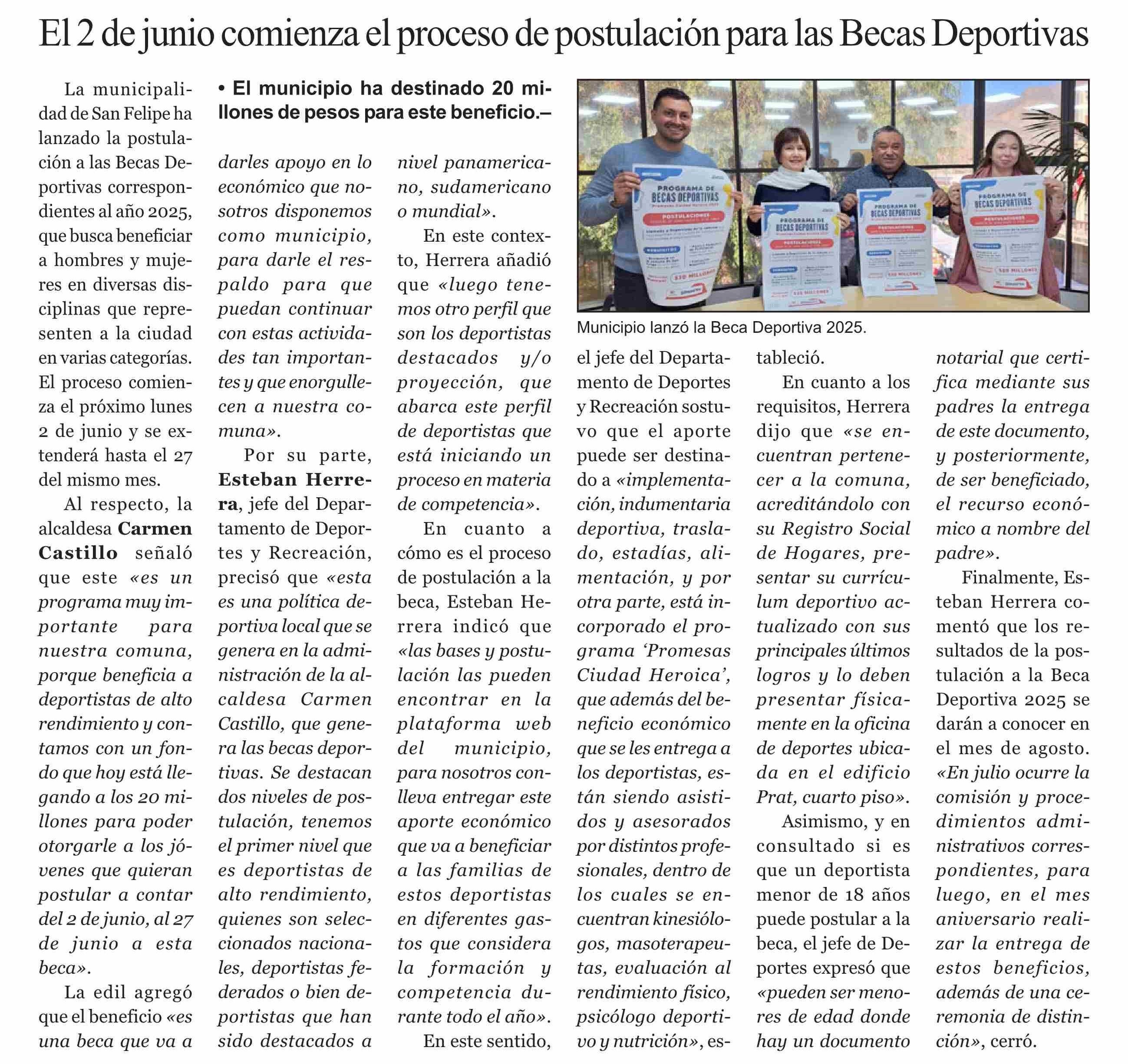 | Título: | El 2 de junio comienza el proceso de postulación para las Becas Deportivas |