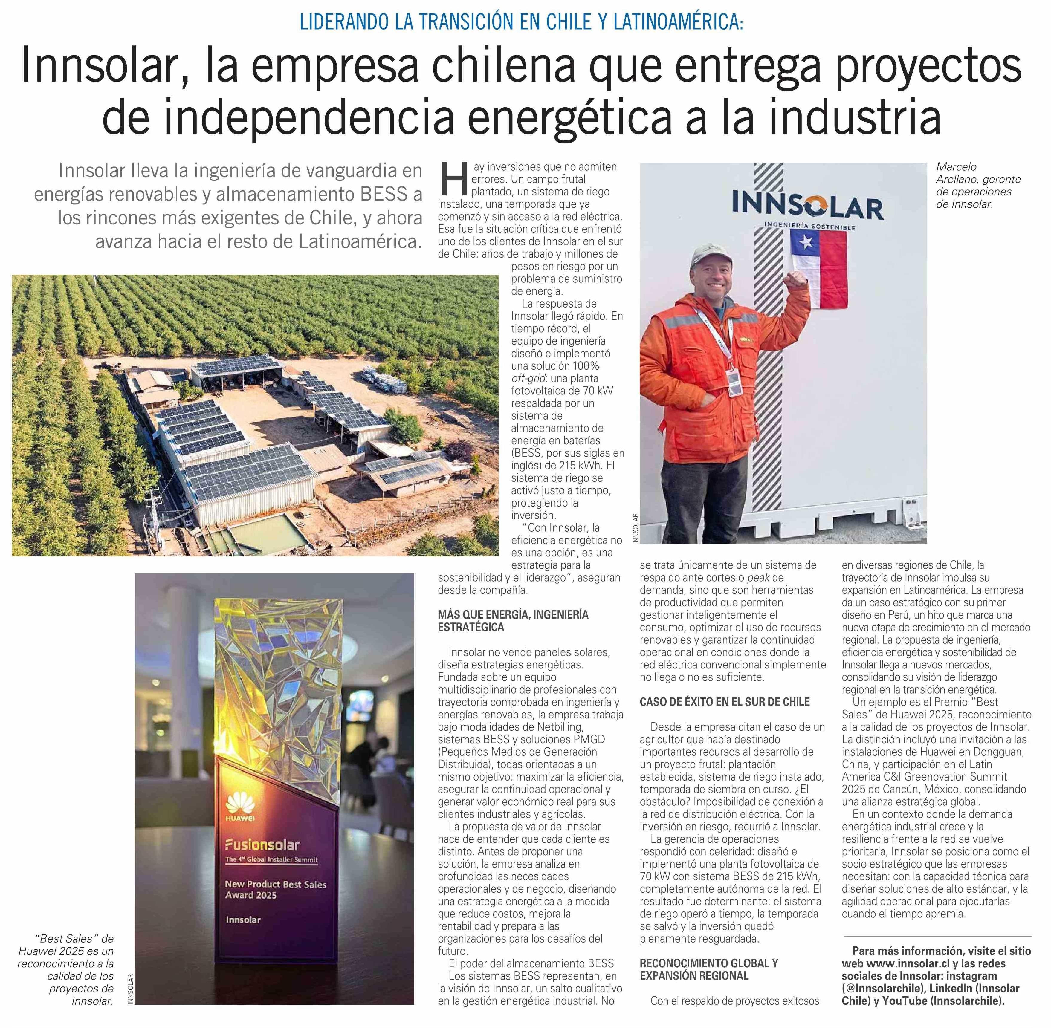 Título: Innsolar, la empresa chilena que entrega proyectos de independencia energética a la industria