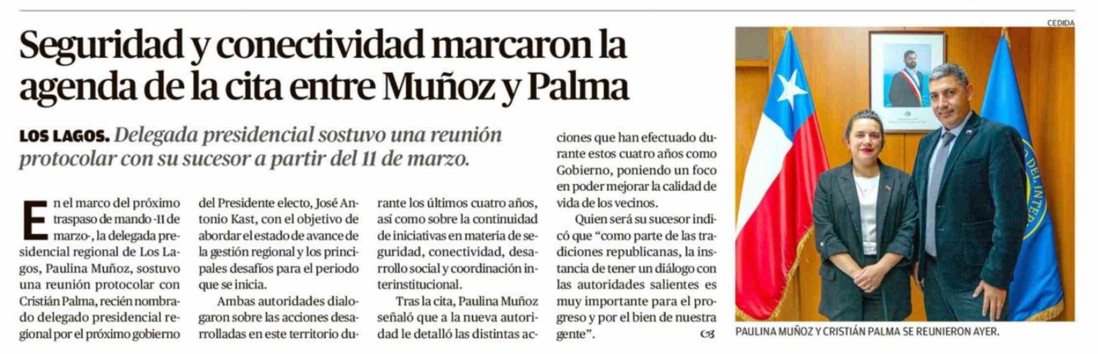 Título: Seguridad y conectividad marcaron la agenda de la cita entre Muñoz y Palma