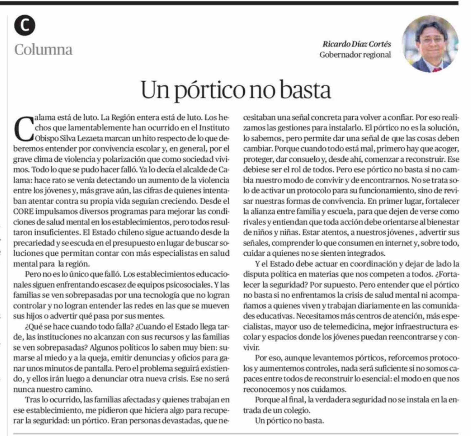 Título: Columnas de Opinión: Un pórtico no basta