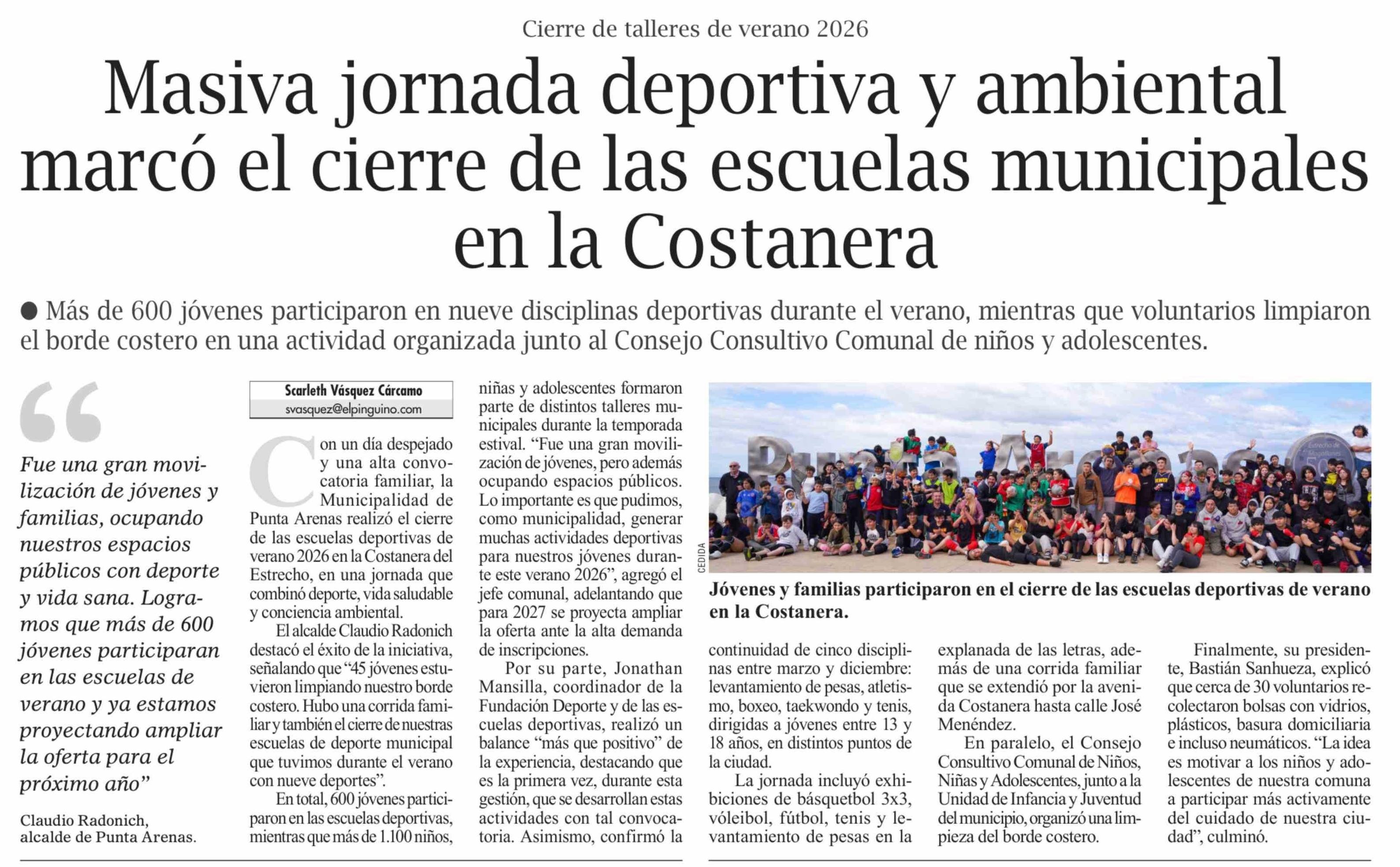 Título: Masiva jornada deportiva y ambiental marcó el cierre de las escuelas municipales en la Costanera