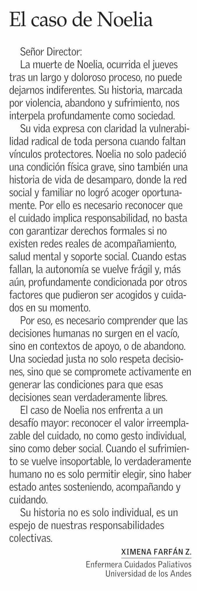 Cartas: El caso de Noelia 28-03-2026 El Mercurio |