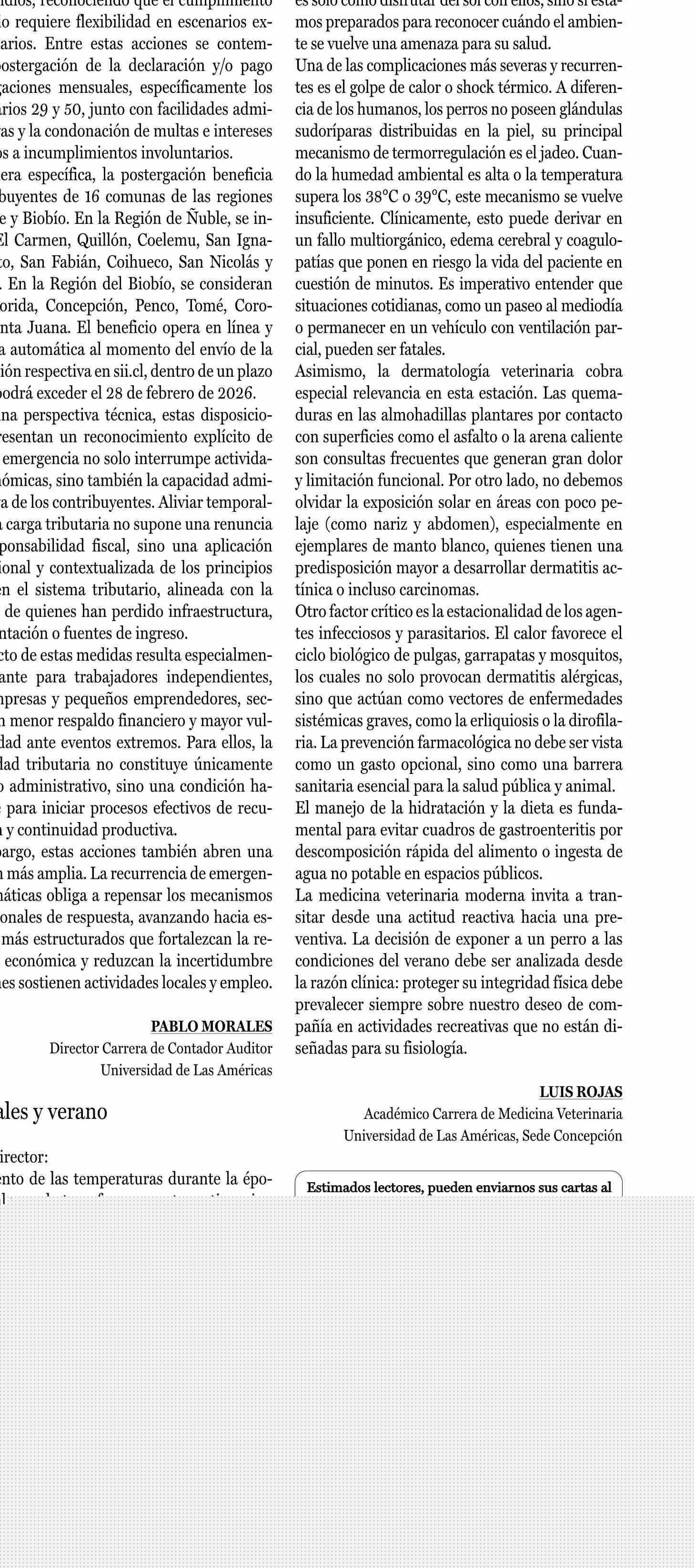 Cartas: Animales y verano 06-02-2026 La Prensa de Curicó |
