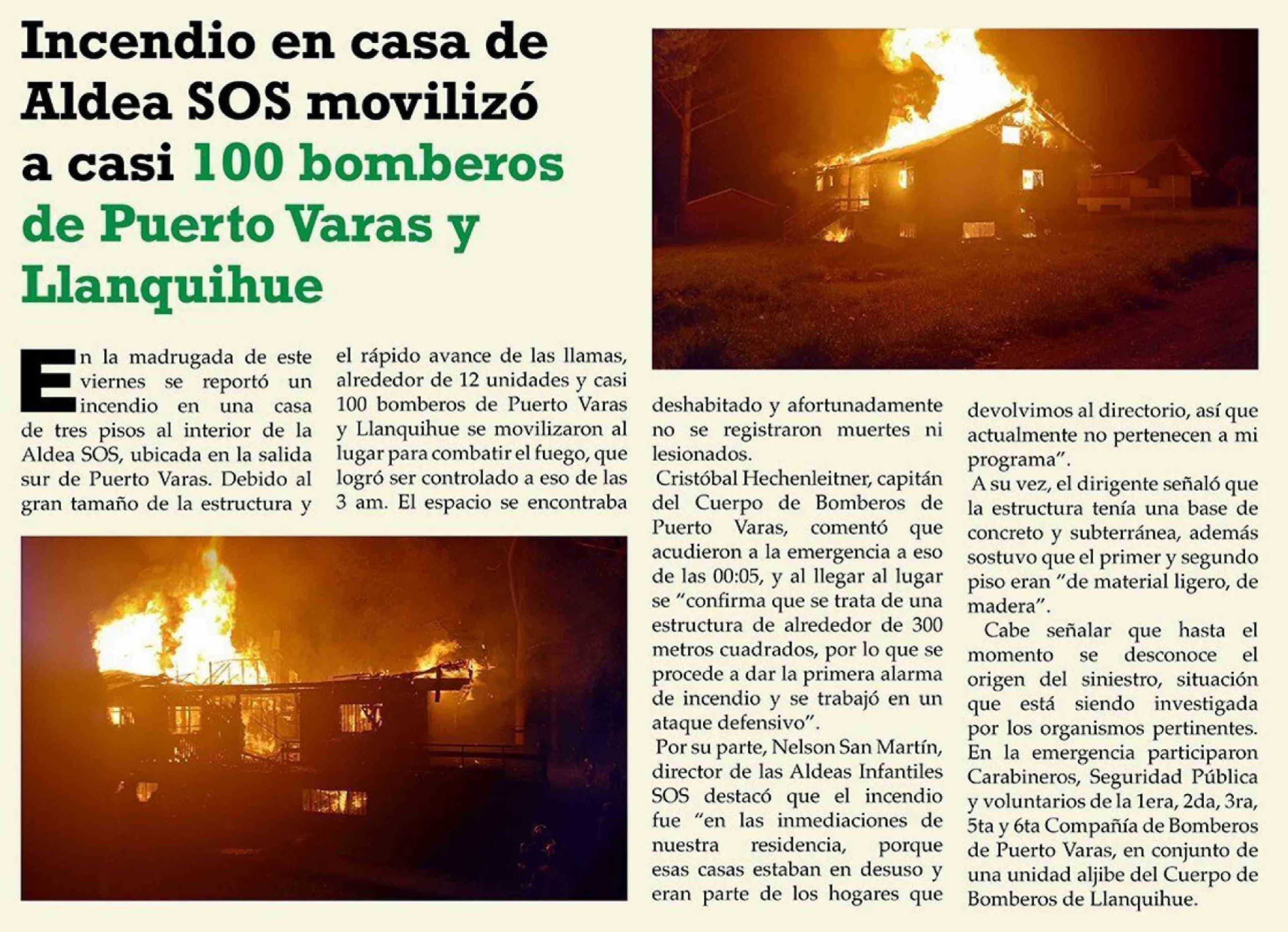 | Título: | Incendio en casa de Aldea SOS movilizó a casi 100 bomberos de Puerto Varas y Llanquihue |