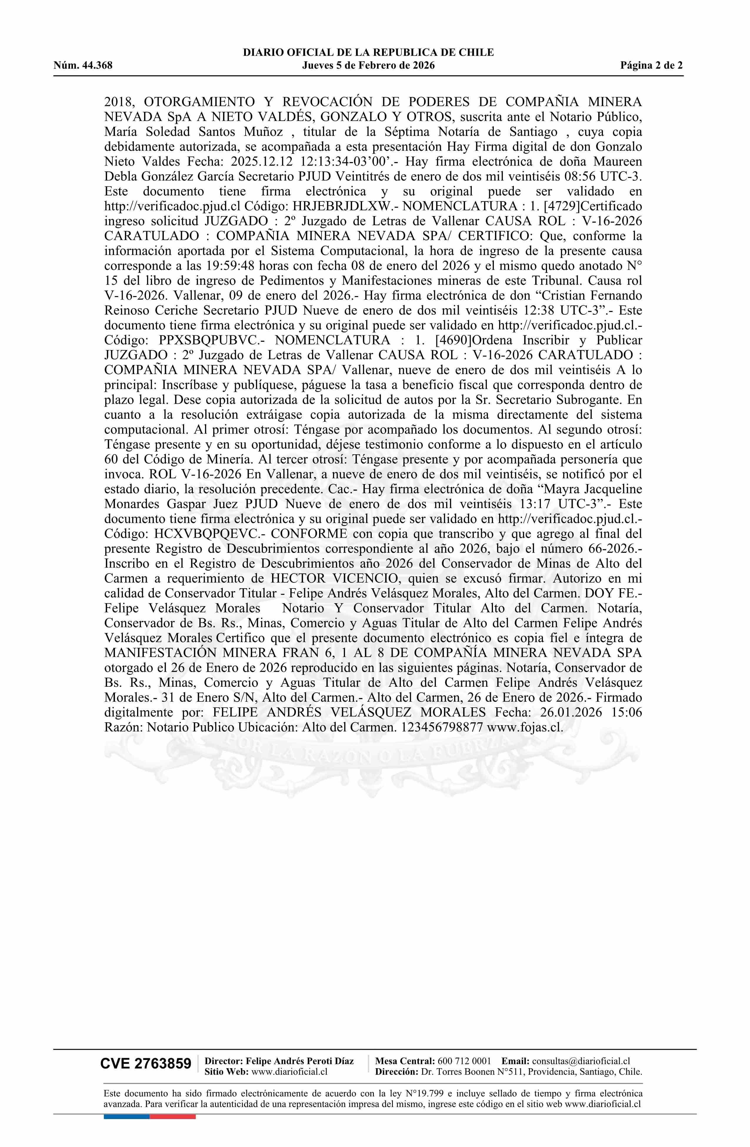 05-02-2026 DIARIO OFICIAL CHILE - BOLETÍN OFICIAL DE MINERÍA