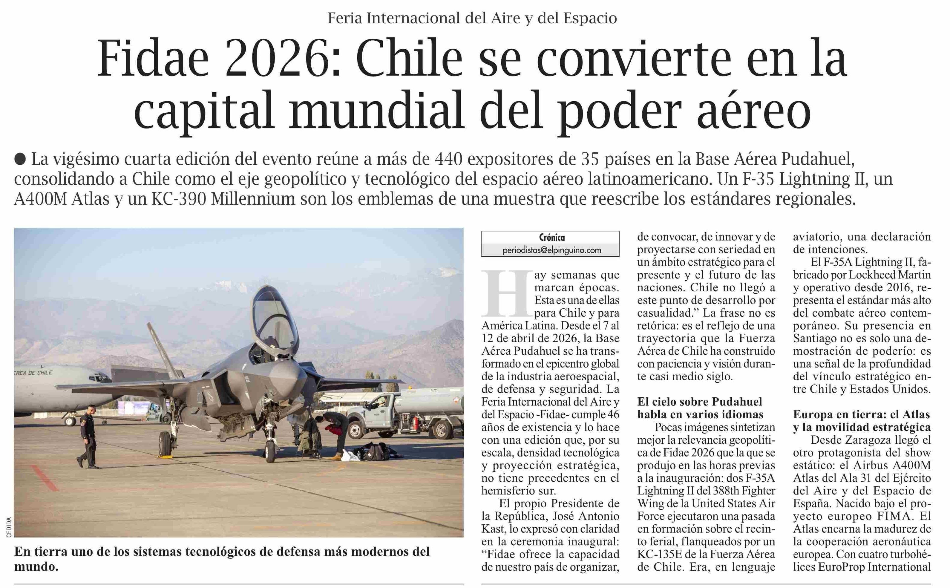 | Título: | Fidae 2026: Chile se convierte en la capital mundial del poder aéreo |