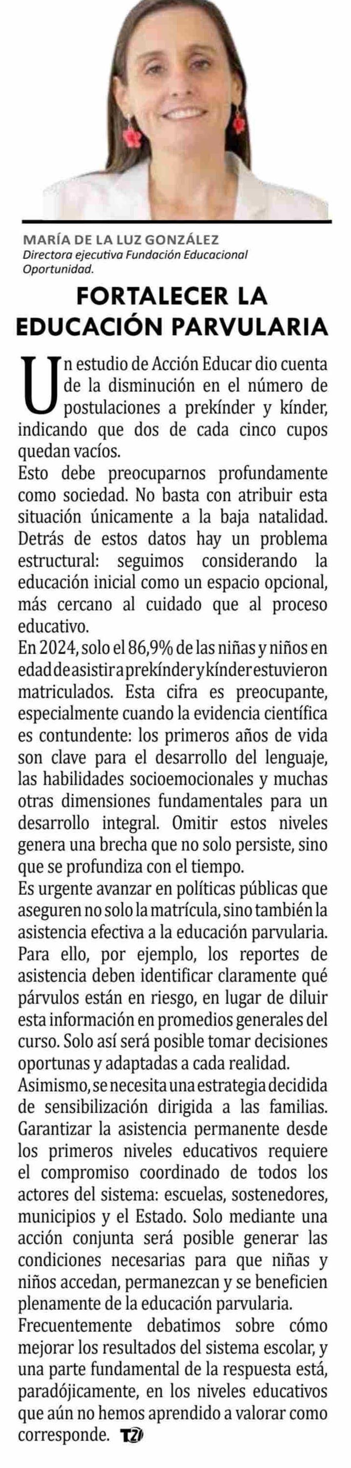 Título: COLUMNAS DE OPINIÓN: FORTALECER LA EDUCACIÓN PARVULARIA