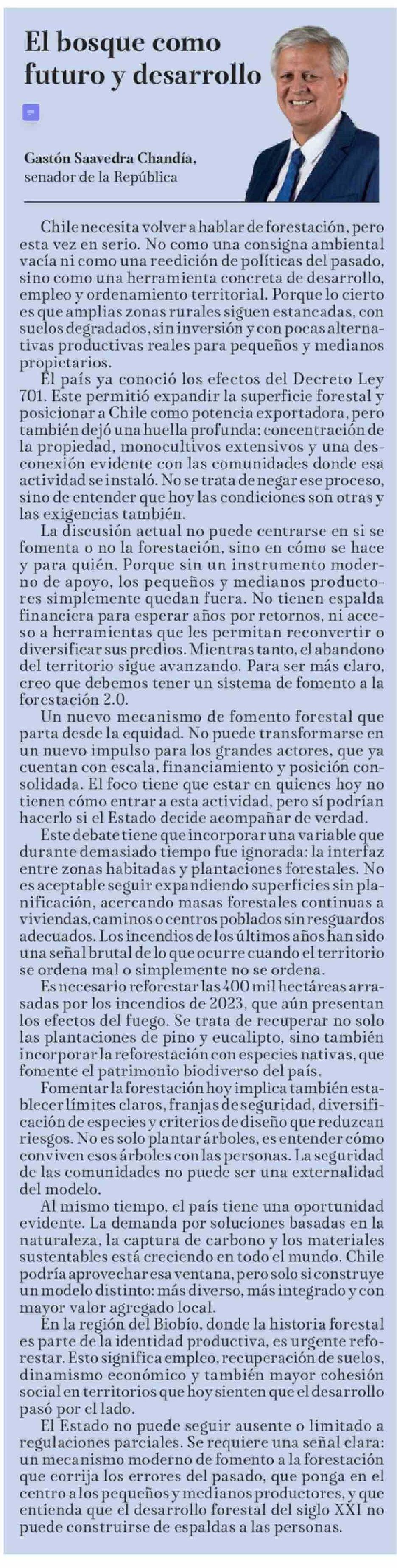 | Título: | Columnas de Opinión: El bosque como futuro y desarrollo |