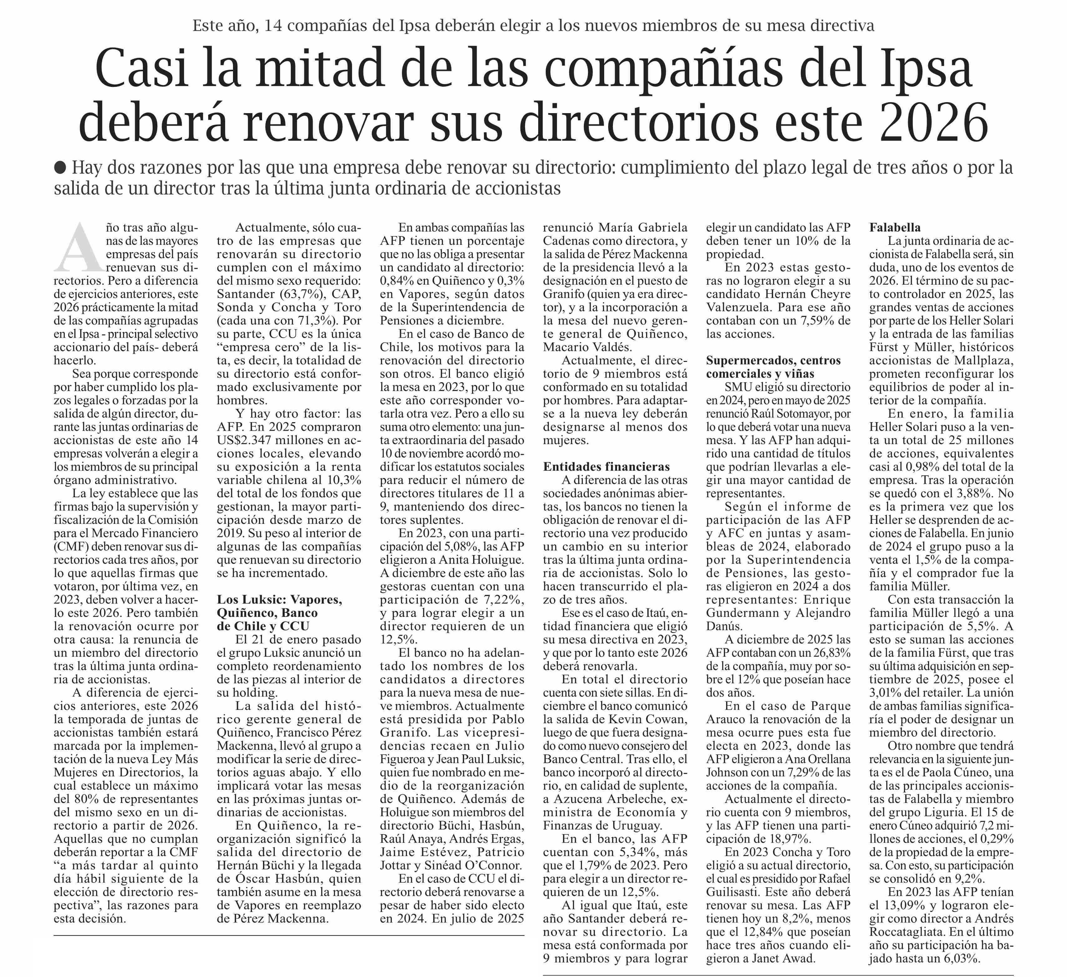 Título: Casi la mitad de las compañías del Ipsa deberá renovar sus directorios este 2026
