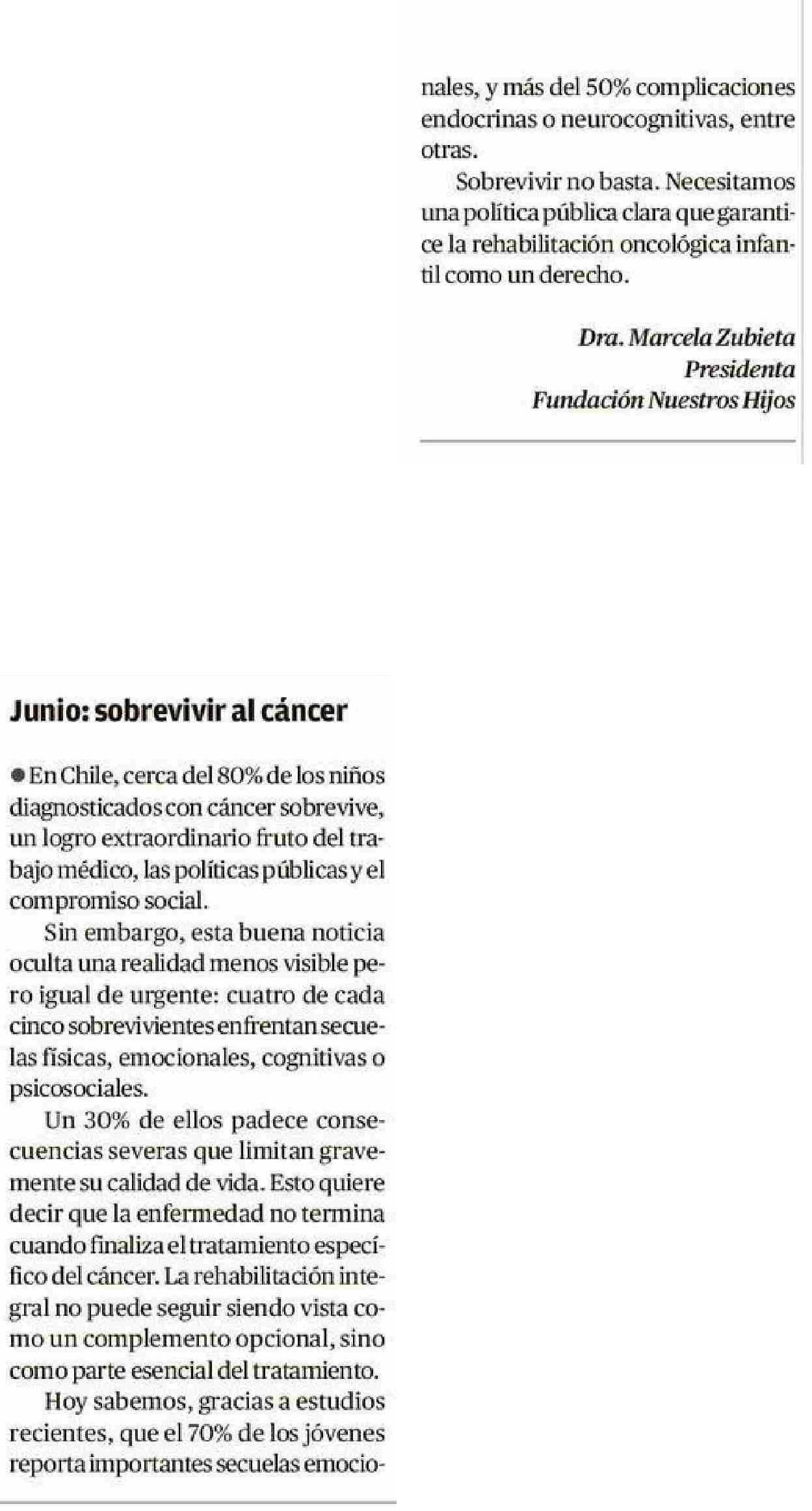 CARTAS: Junio, sobrevivir al cáncer 06-06-2025 Diario Austral Región de Los Ríos |