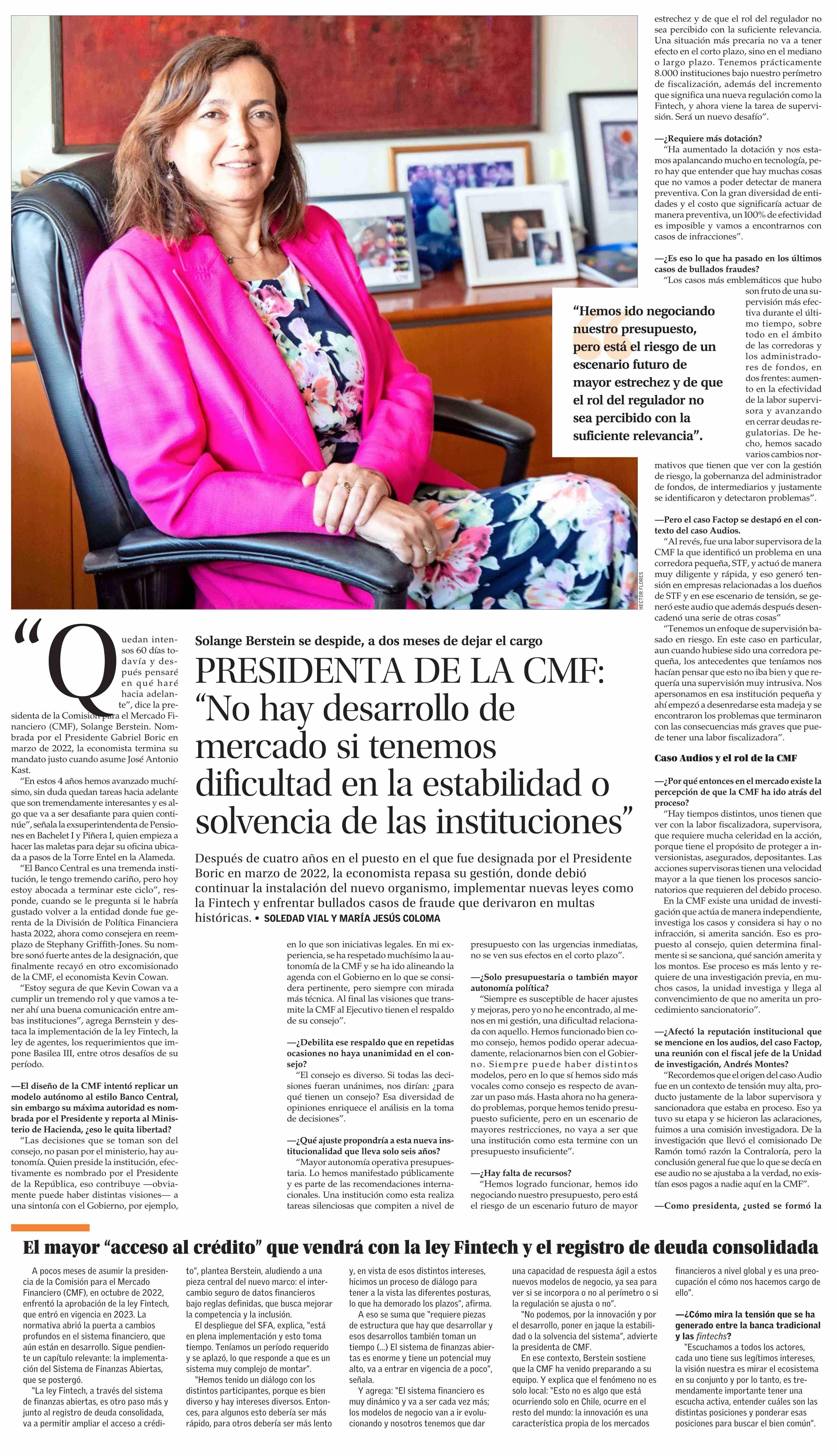 Título: PRESIDENTA DE LA CMF: “No hay desarrollo de mercado si tenemos dificultad en la estabilidad o solvencia de las instituciones”