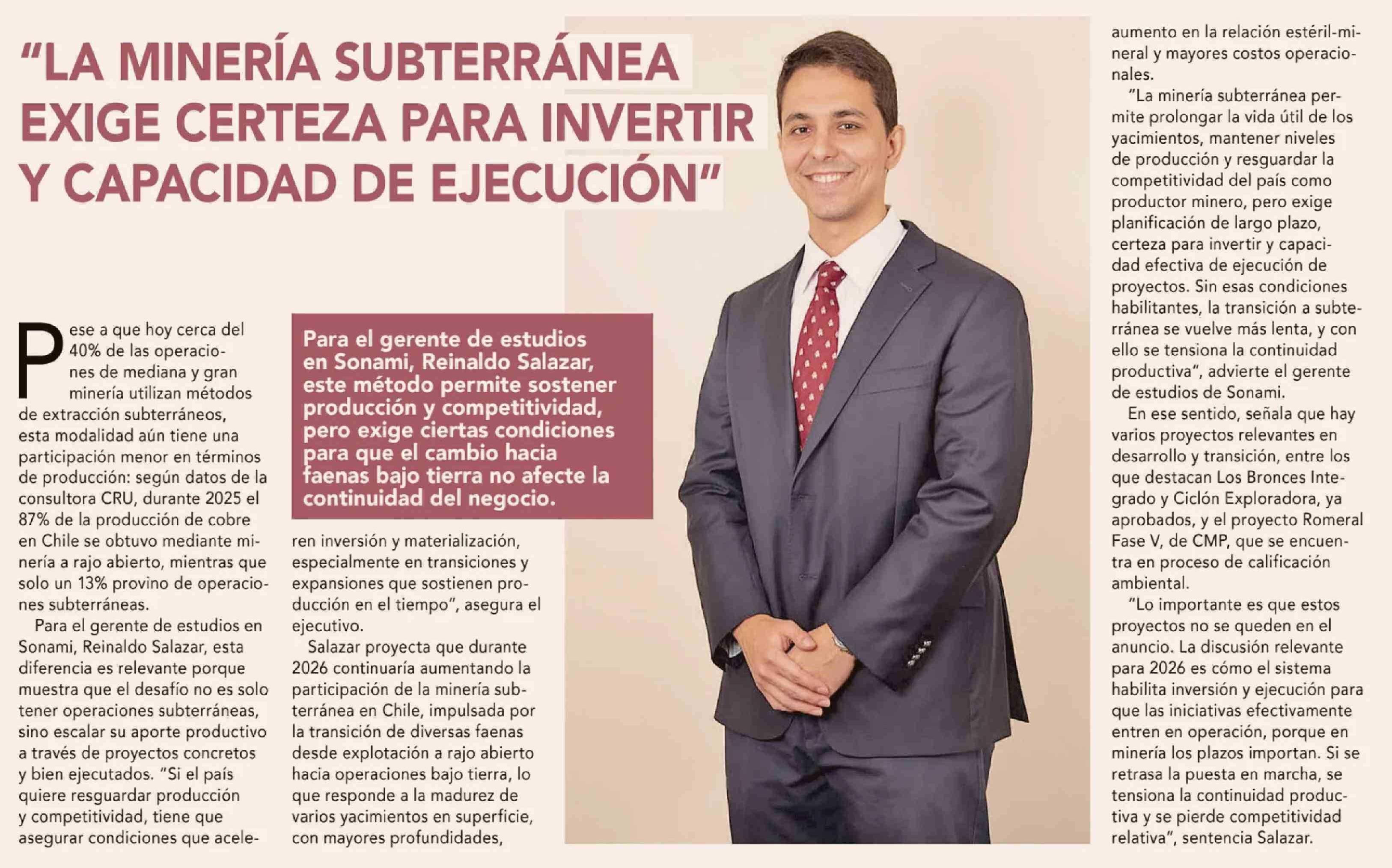 Título: "LA MINERÍA SUBTERRÁNEA EXIGE CERTEZA PARA INVERTIR Y CAPACIDAD DE EJECUCIÓN"