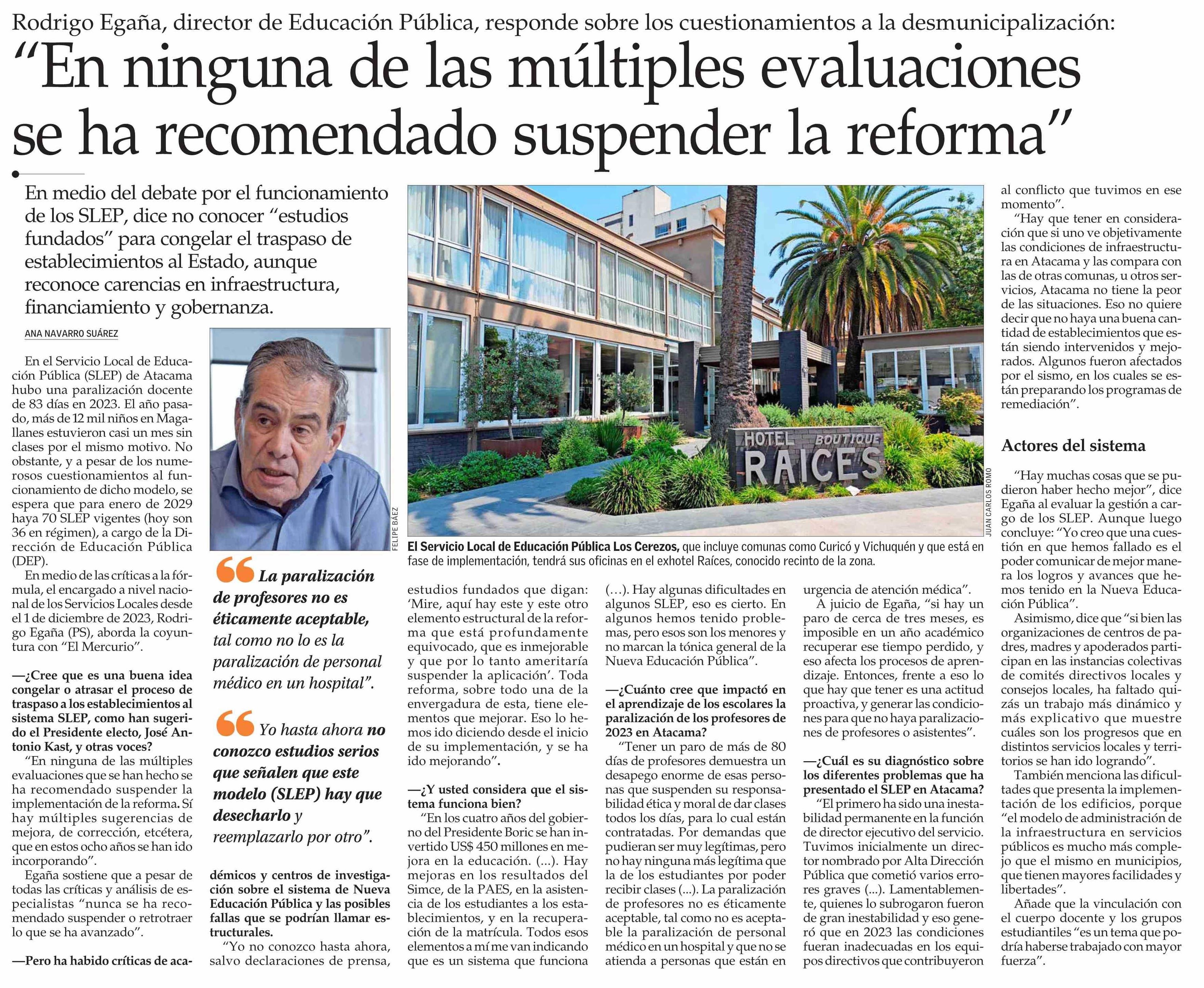 “En ninguna de las múltiples evaluaciones se ha recomendado suspender la reforma” 26-01-2026 El Mercurio |