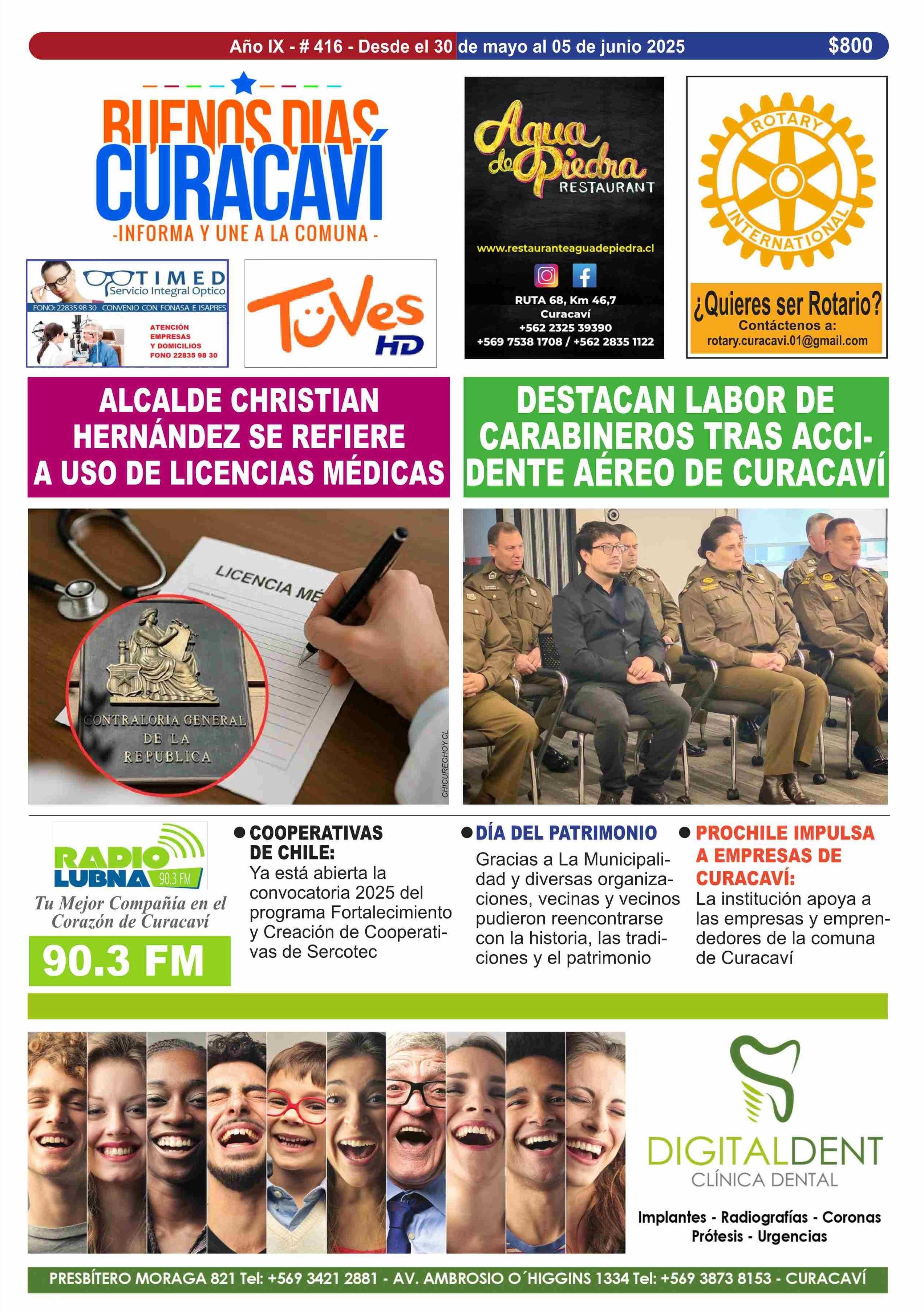 PORTADA BUENOS DÍAS CURACAVÍ - CHILE 30-05-2025 Buenos Días Curacaví |