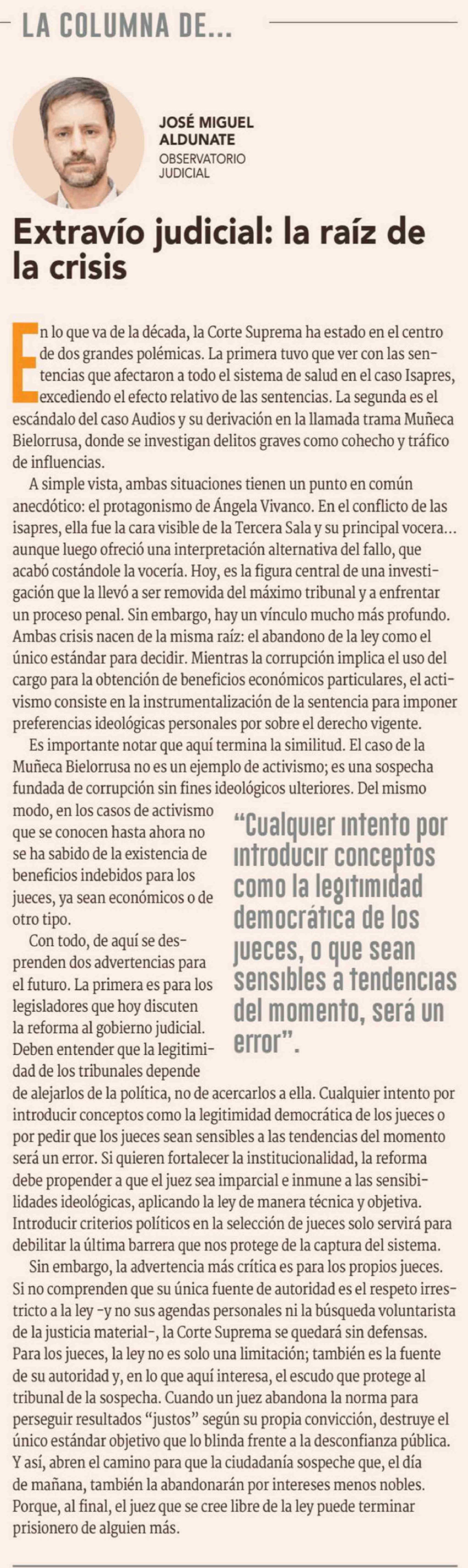 Columnas de Opinión: Extravío judicial: la raíz de la crisis 04-02-2026 Diario Financiero |
