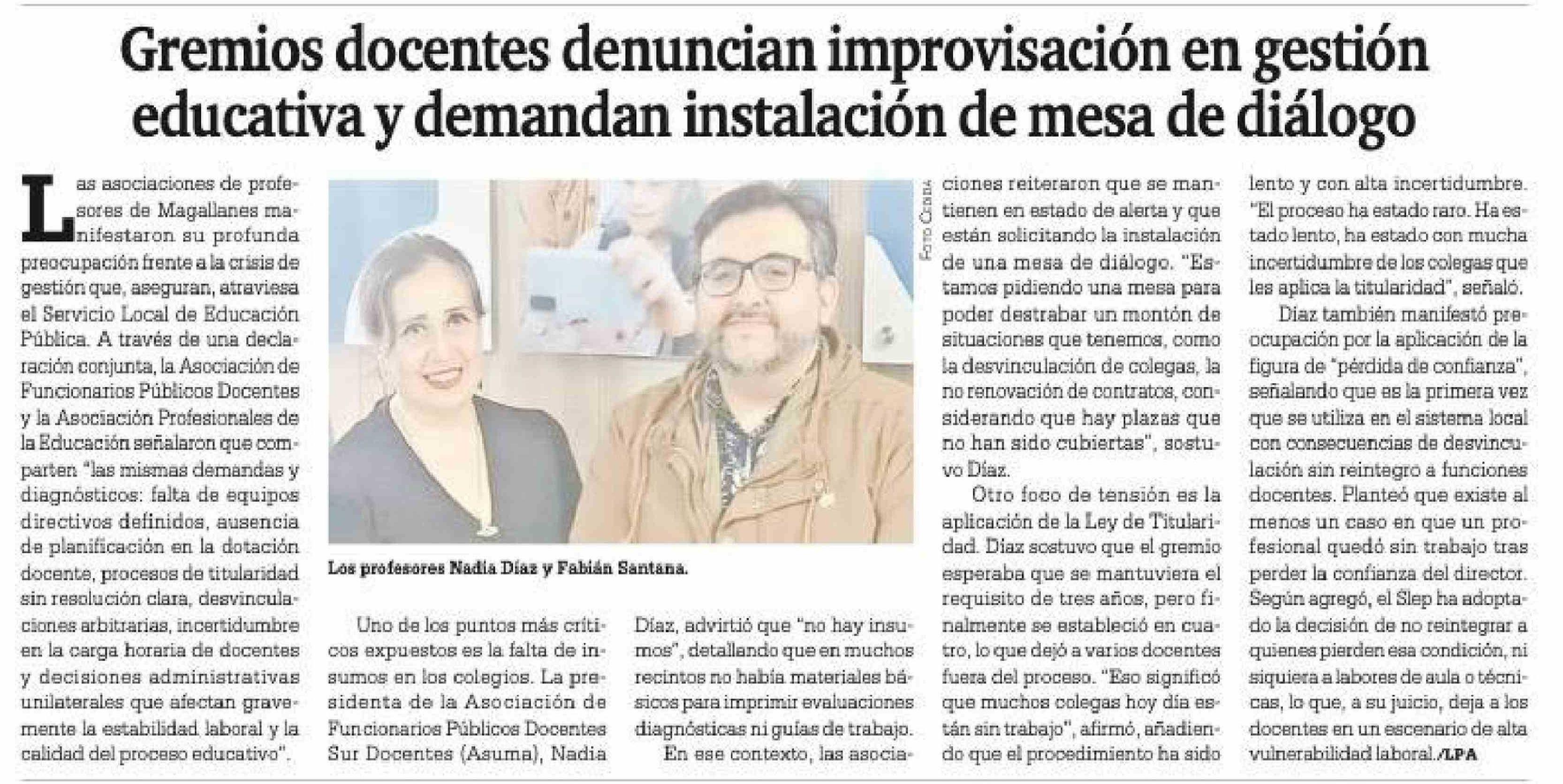 Título: Gremios docentes denuncian improvisación en gestión educativa y demandan instalación de mesa de diálogo