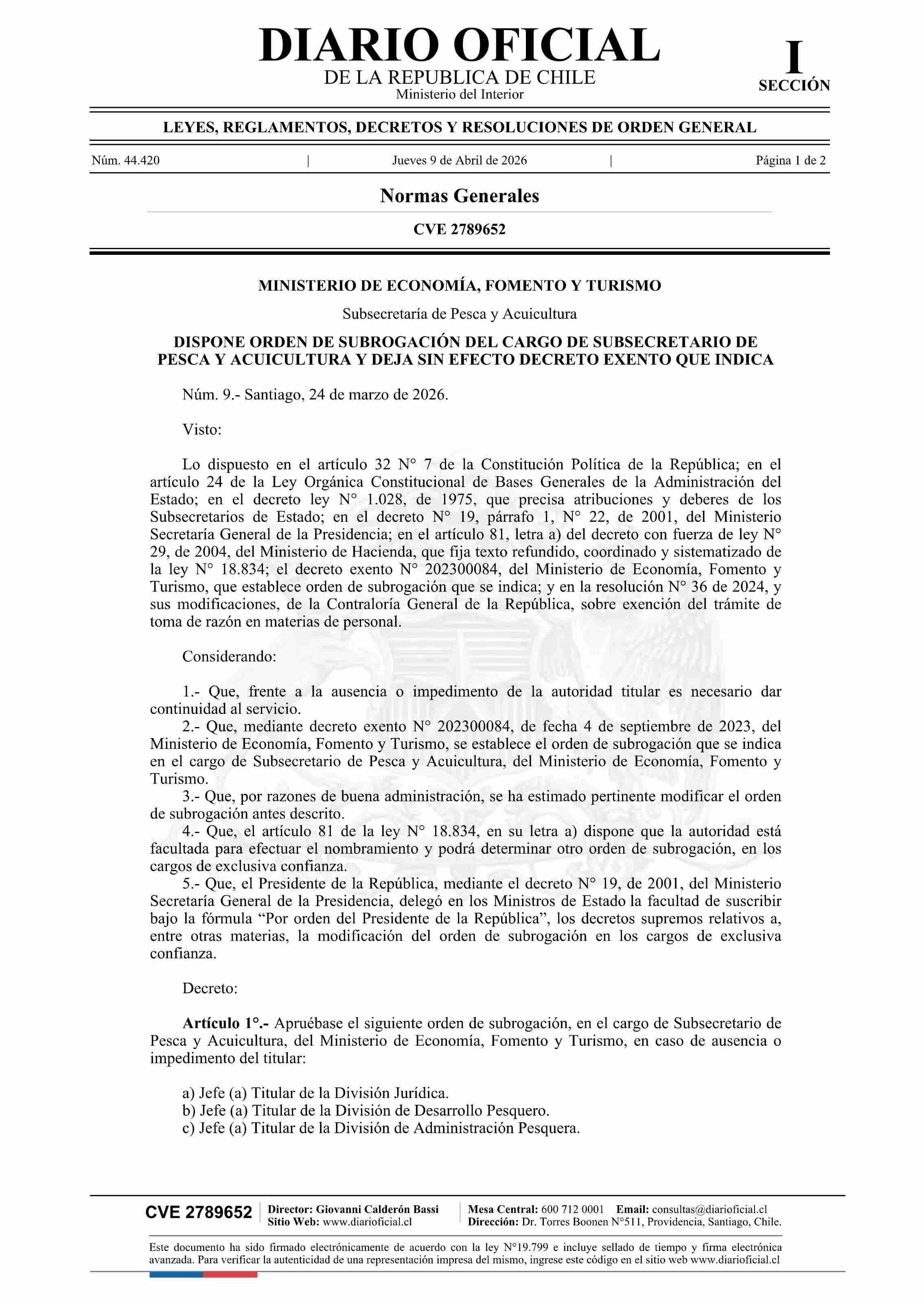 MINISTERIO DE ECONOMÍA, FOMENTO Y TURISMO 09-04-2026 Diario Oficial Edición Electrónica |