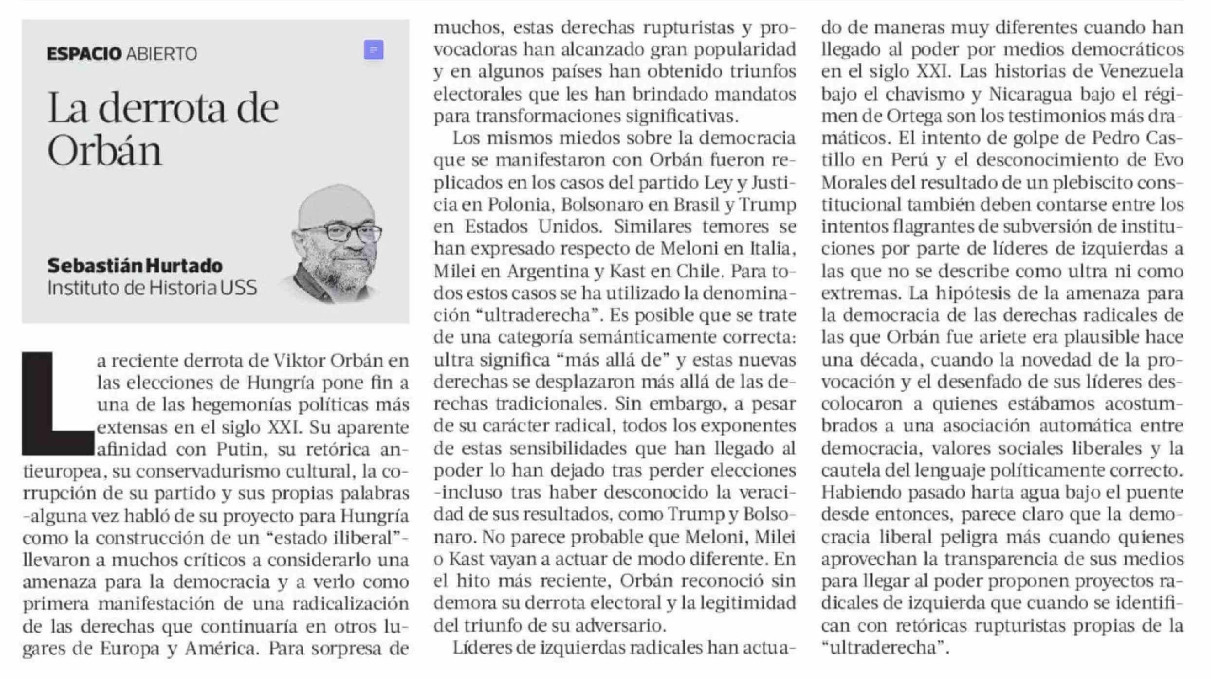 Columnas de Opinión: La derrota de Orbán 17-04-2026 La Tercera |