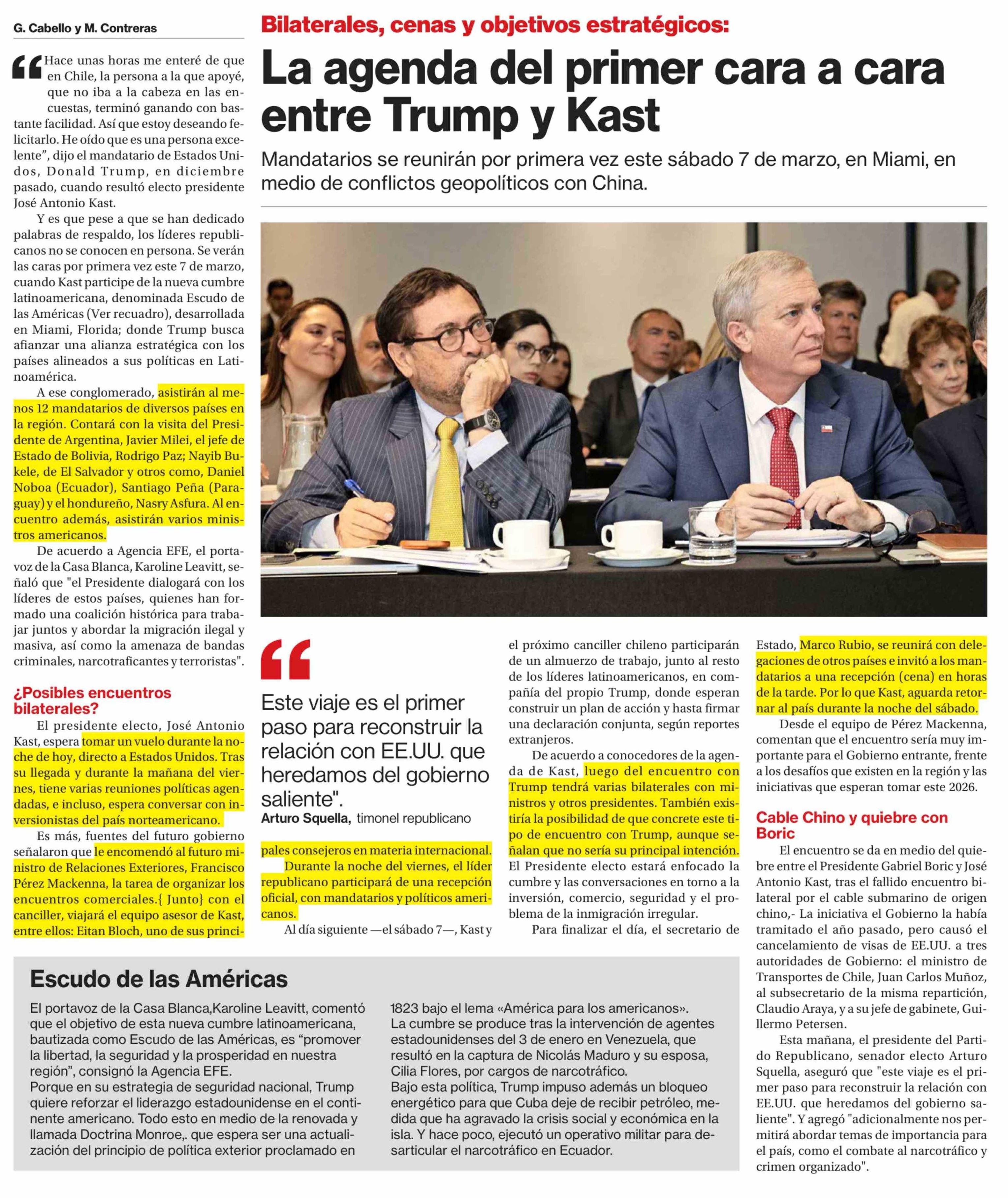 La agenda del primer cara a cara entre Trump y Kast 05-03-2026 La Segunda |