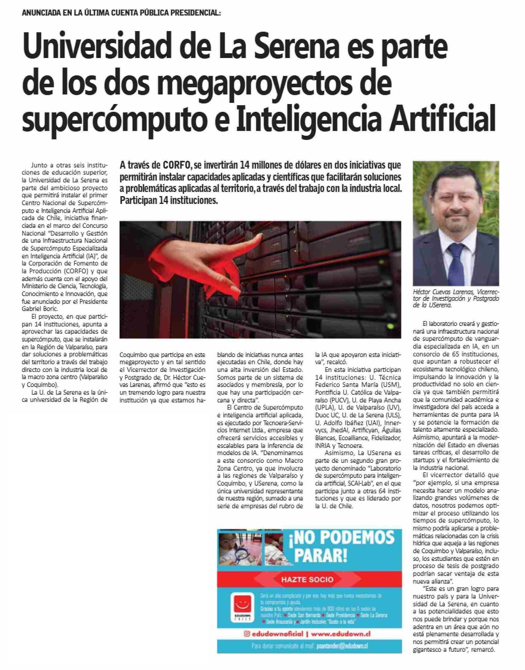 Universidad de La Serena es parte de los dos megaproyectos de supercómputo e Inteligencia Artificial 20-06-2025 Semanario Tiempo |