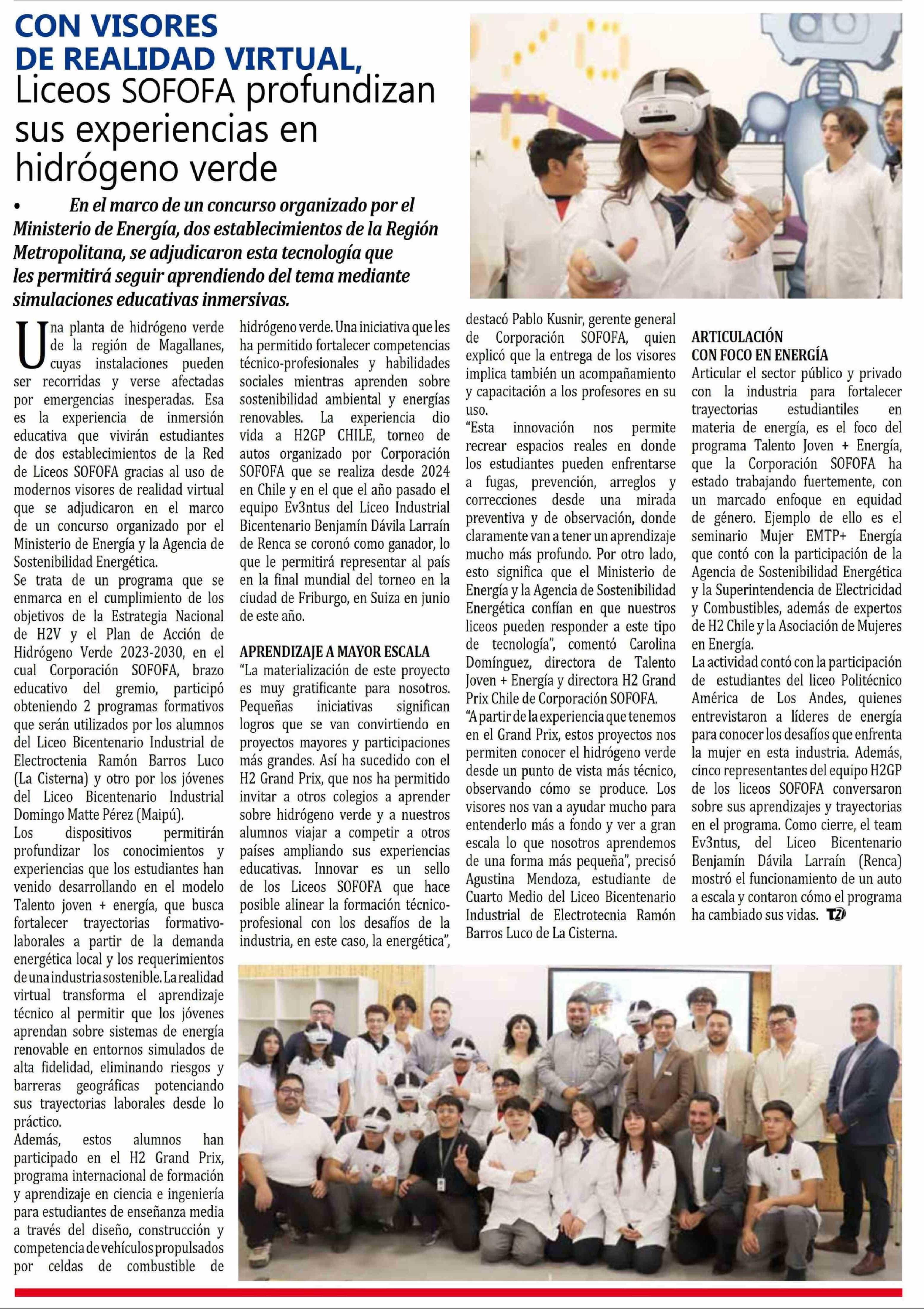 | Título: | CON VISORES DE REALIDAD VIRTUAL, Liceos SOFOFA profundizan sus experiencias en hidrógeno verde |