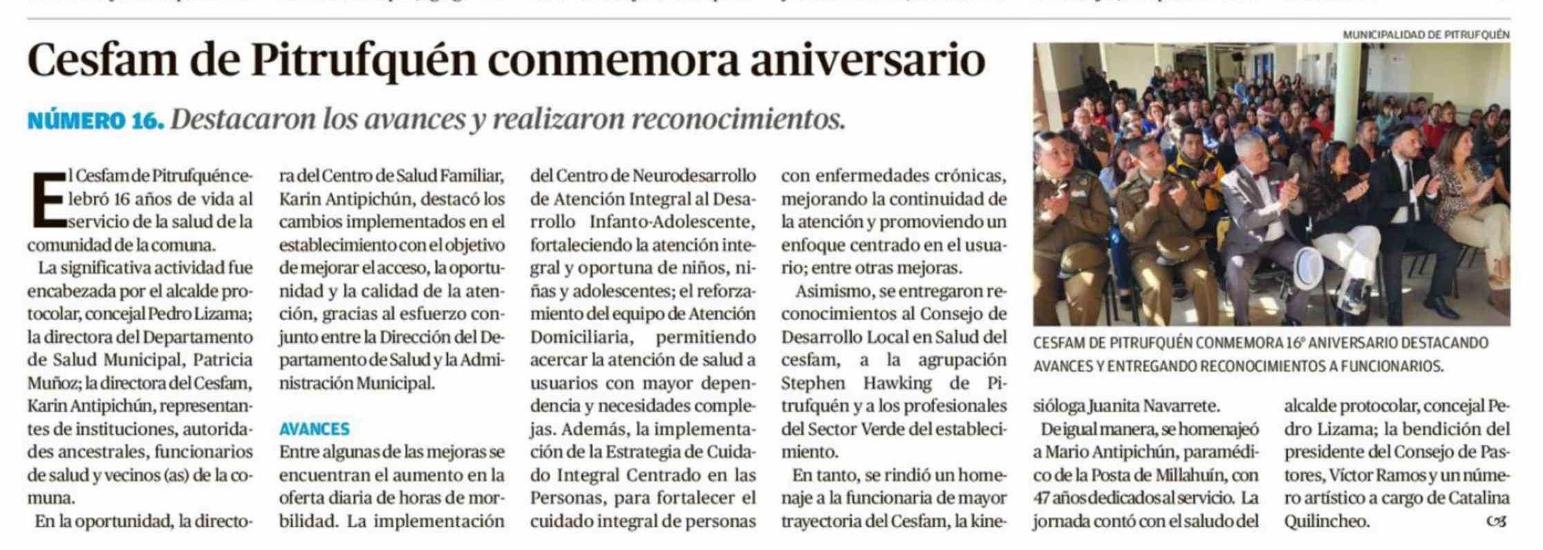Título: Cesfam de Pitrufquén conmemora aniversario