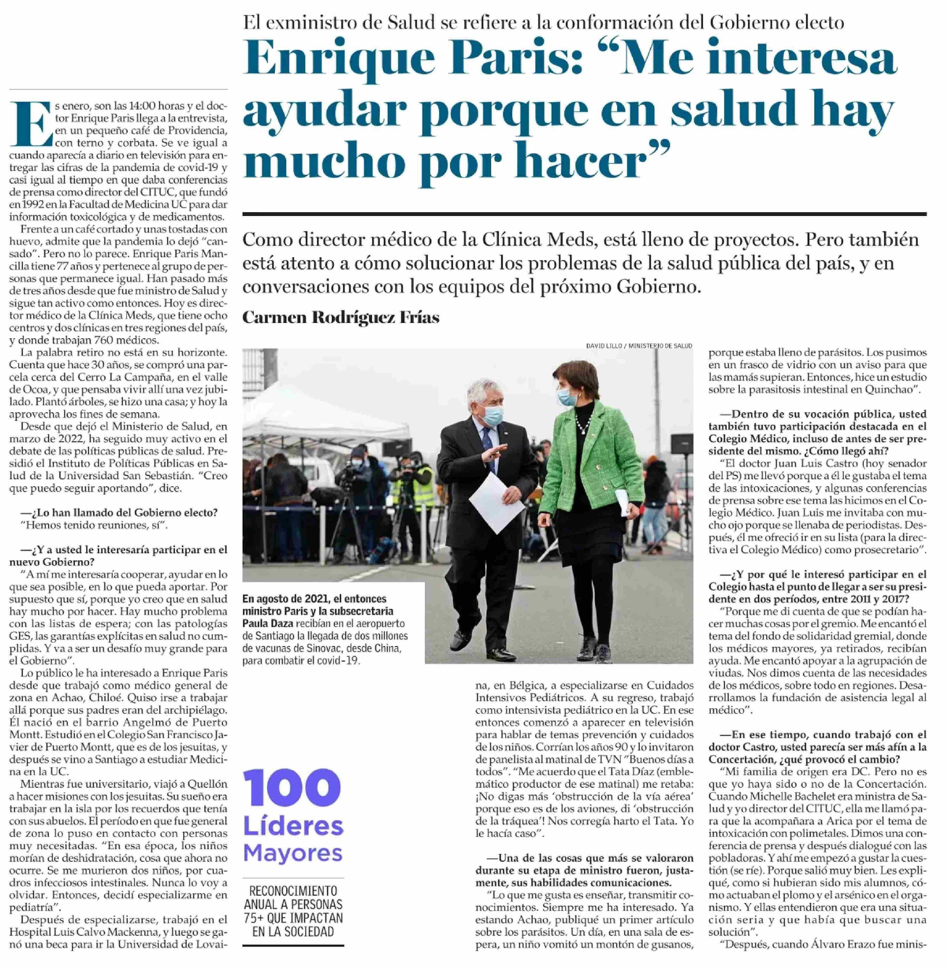 Enrique Paris: “Me interesa ayudar porque en salud hay mucho por hacer” 12-01-2026 El Mercurio |