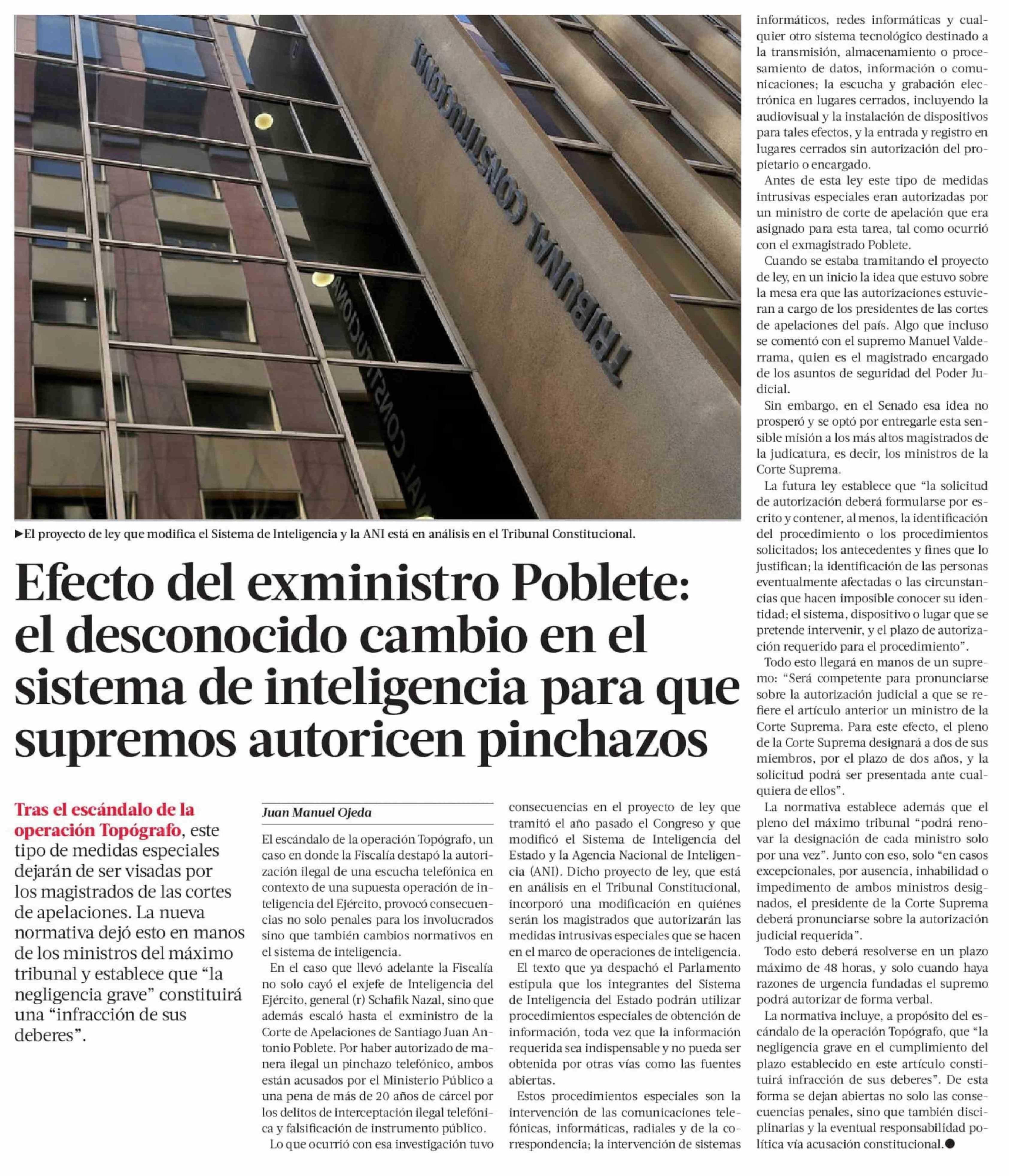 | Título: | Efecto del exministro Poblete: el desconocido cambio en el sistema de inteligencia para que supremos autoricen pinchazos |