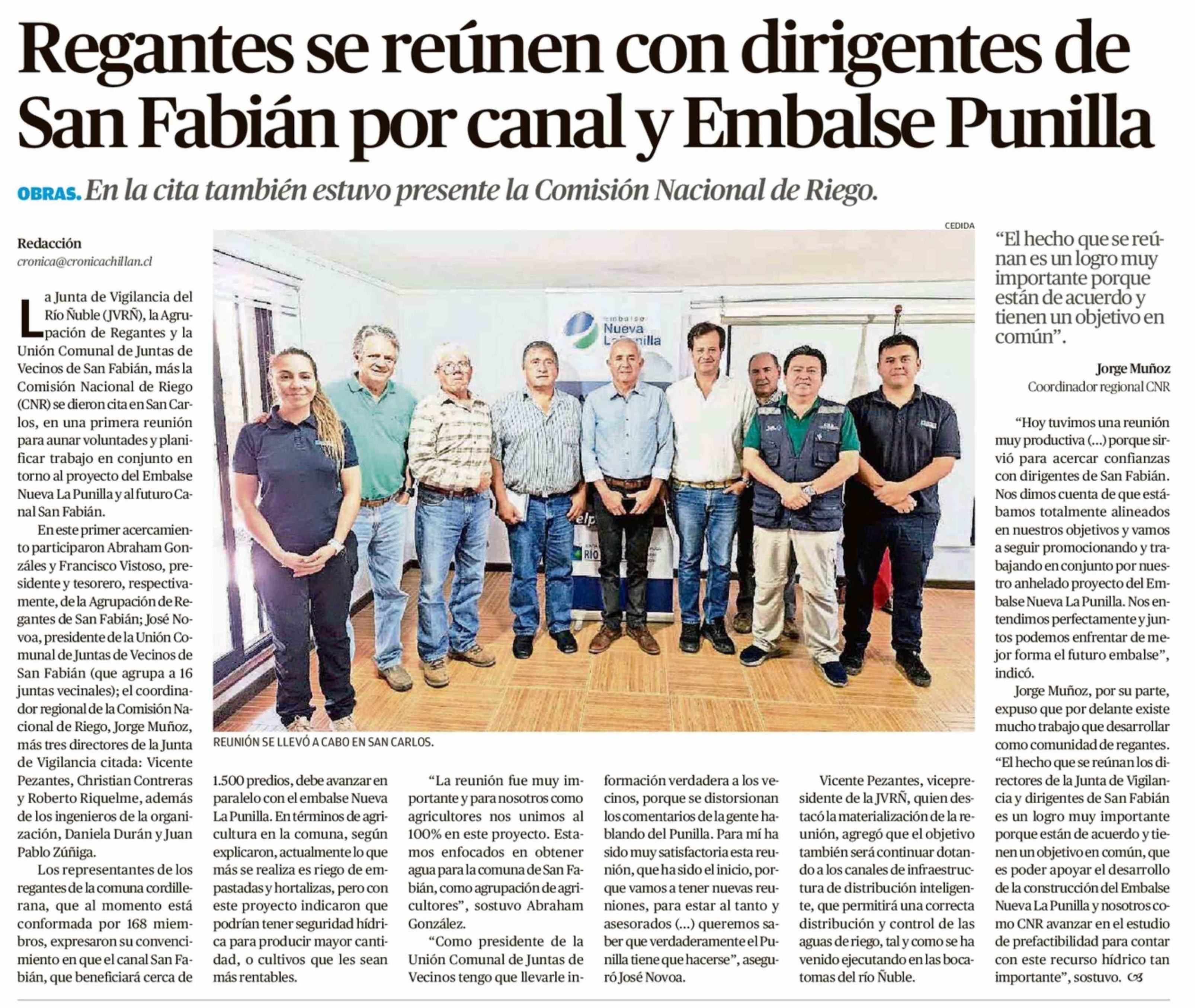 | Título: | Regantes se reúnen con dirigentes de San Fabián por canal y Embalse Punilla |