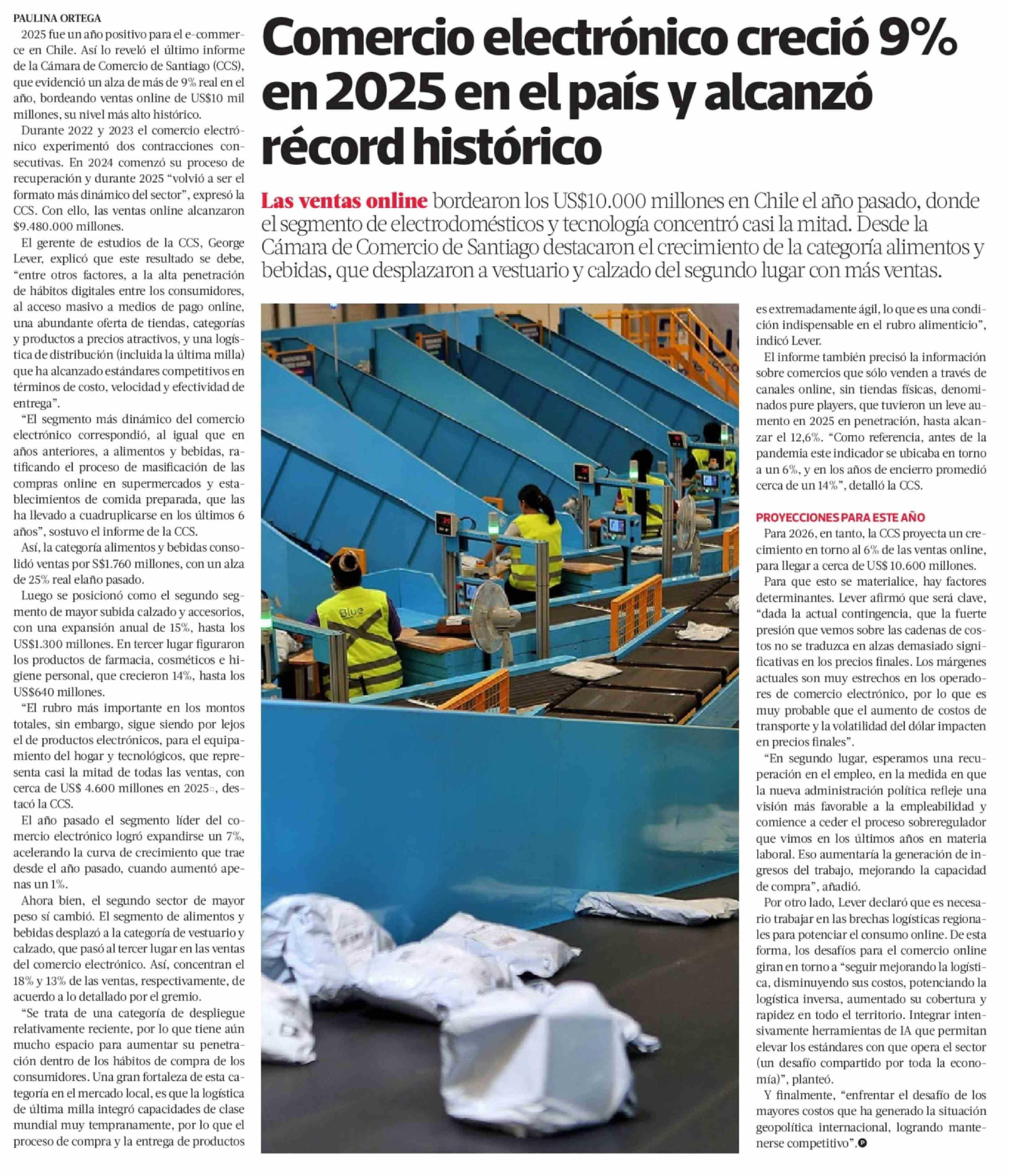 Comercio electrónico creció 9% en 2025 en el país y alcanzó récord histórico 31-03-2026 La Tercera |