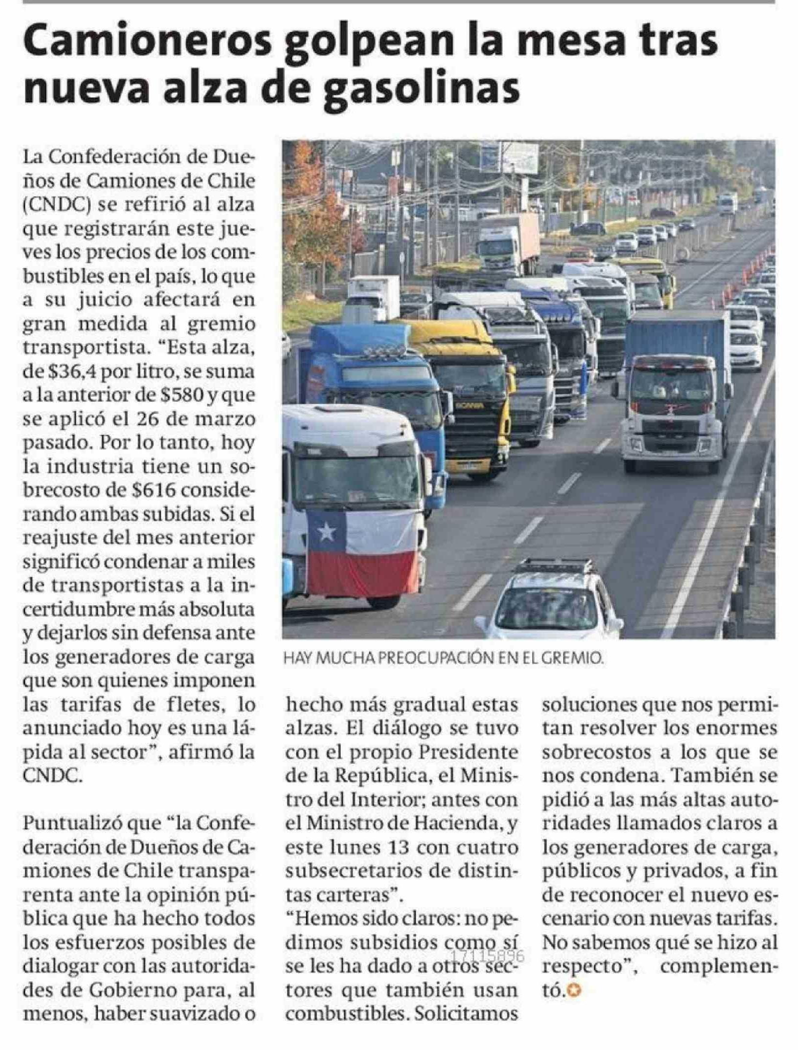 Camioneros golpean la mesa tras nueva alza de gasolinas 16-04-2026 La Estrella de Antofagasta |